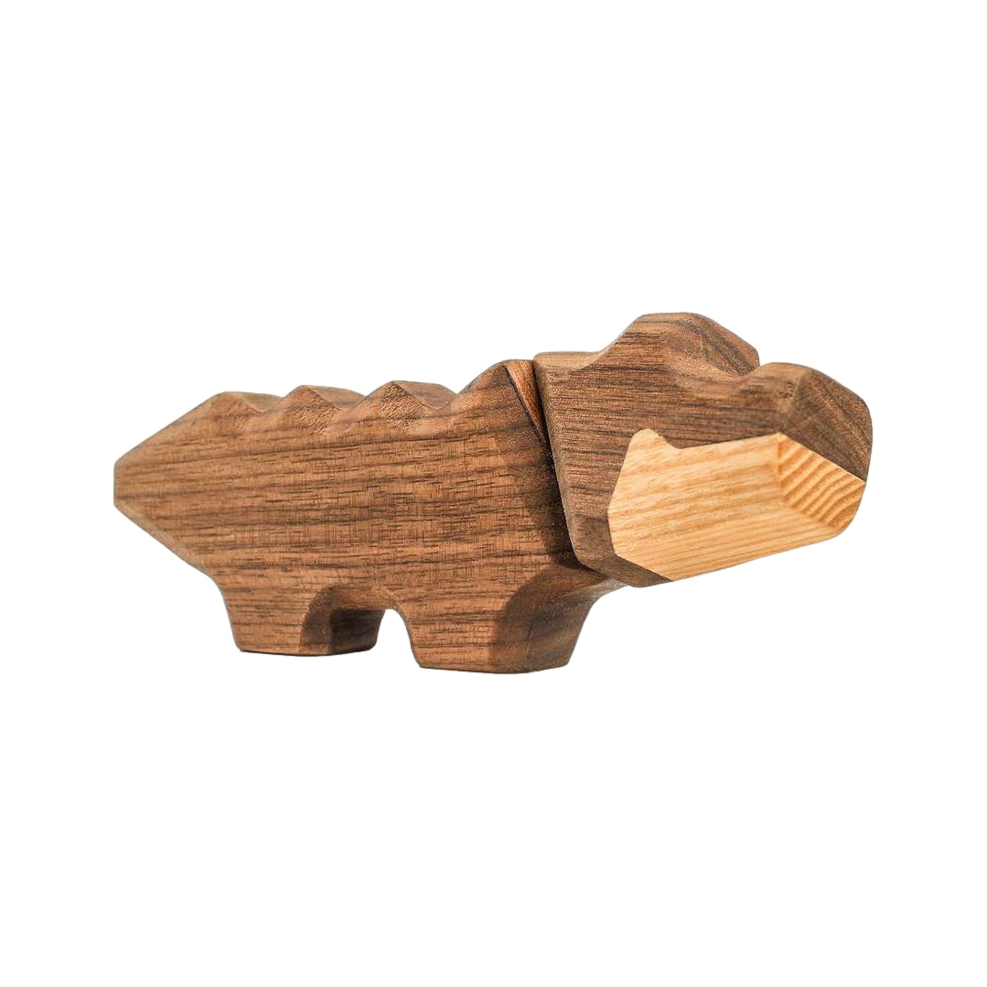 Das kleine Krokodil wird aus nordamerikanischem Walnuss- und Eschenholz hergestellt.