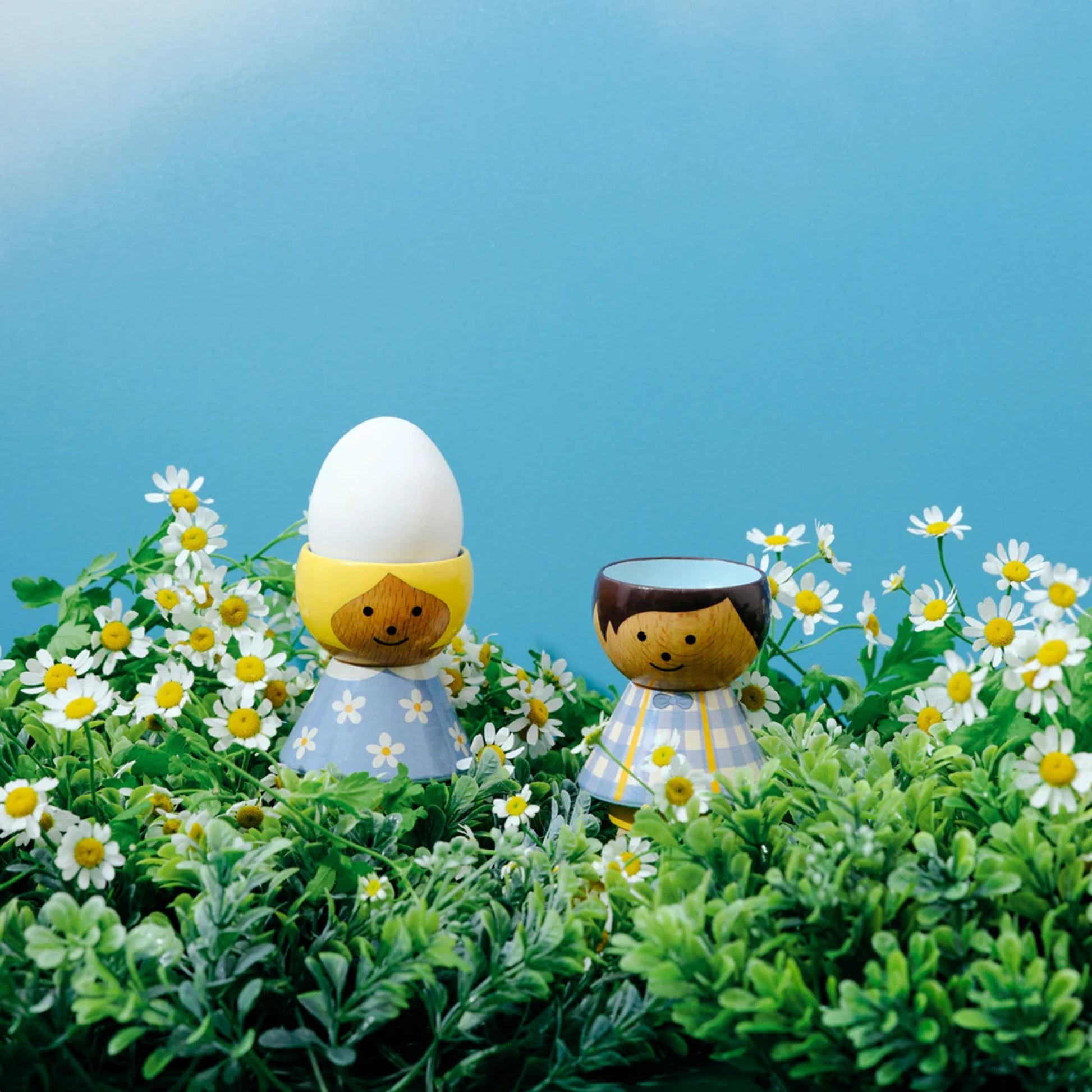 Verschönern Sie Ihren Frühstückstisch mit dem bezaubernden Gänseblümchen- Eierhalter. In ihrem zartblauen Kleidchen, verziert mit fröhlichen weißen Gänseblümchen, bringt sie einen Hauch skandinavischen Designs in Ihre Morgenroutine. Ihr liebes Lächeln und ihr sonnengelbes Haar lassen jedes Frühstück wie einen frischen Frühlingsmorgen wirken.