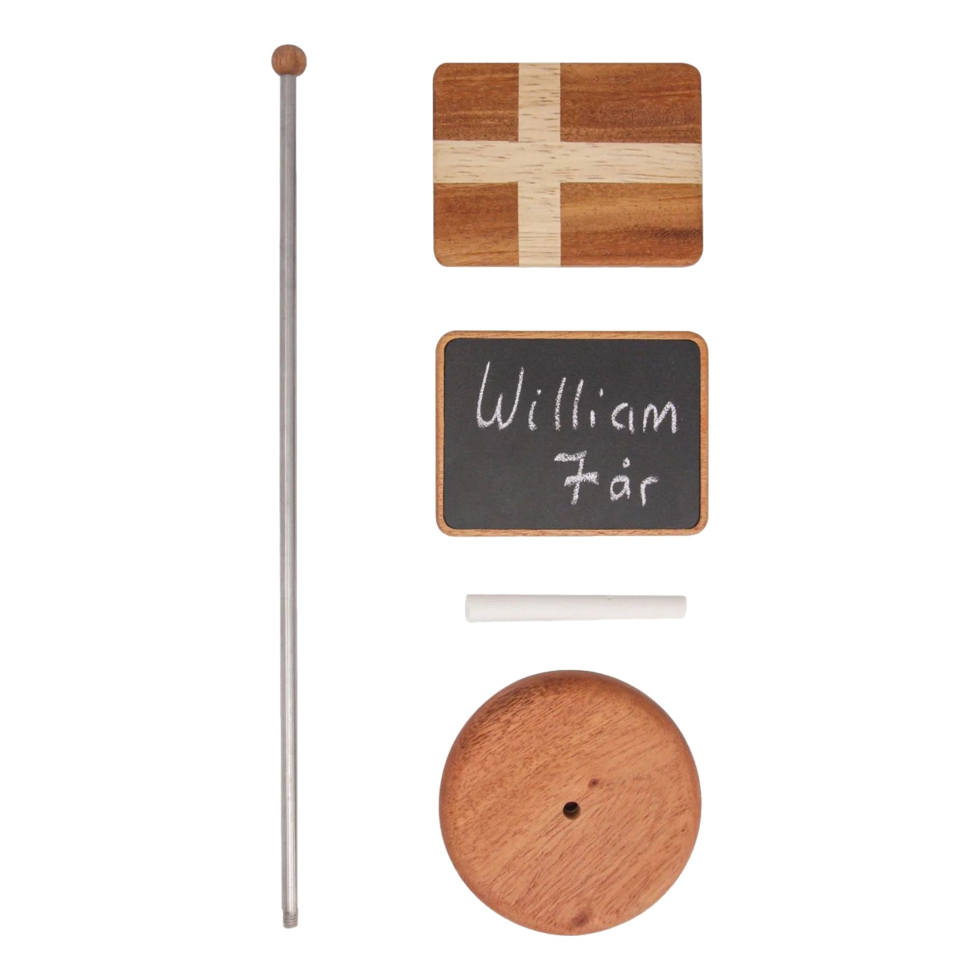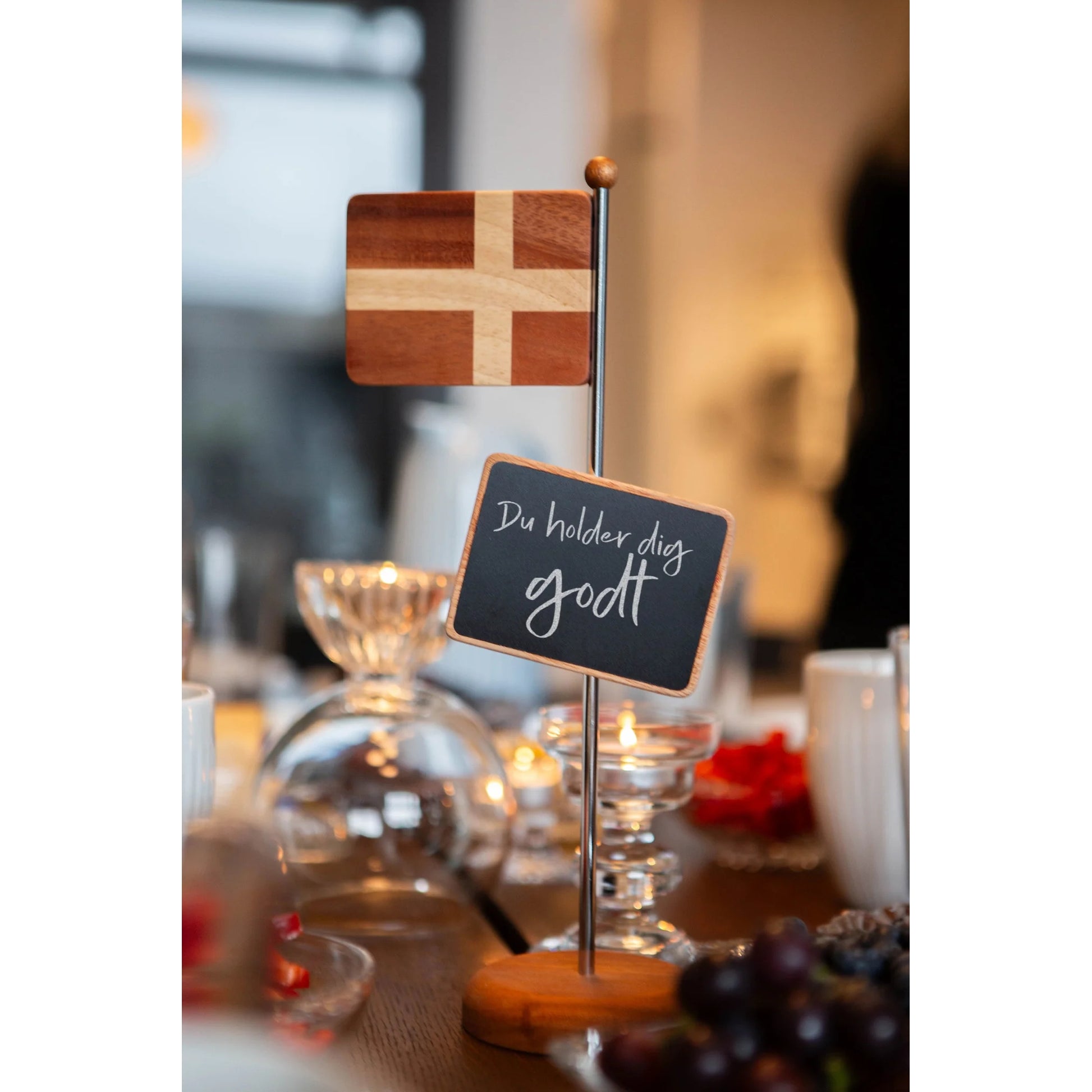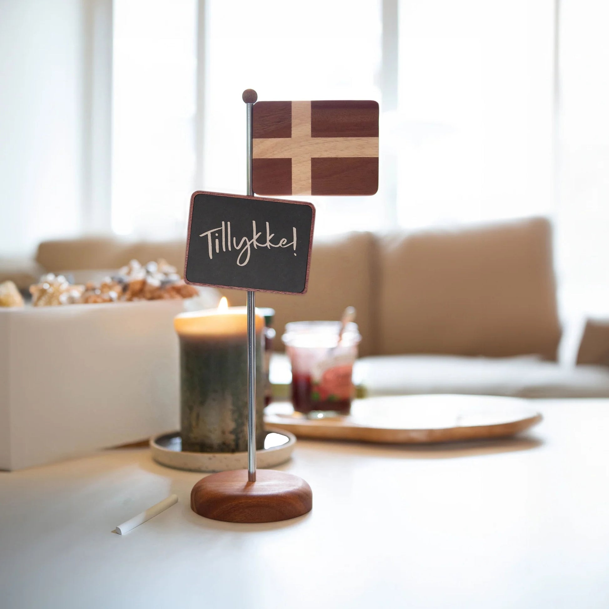 Die Tischflagge ist auch ein ideales Geschenk für Hochzeiten, Konfirmationen, Taufen oder andere festliche Anlässe. Kreidetafel und Kreide sind im Lieferumfang enthalten.
