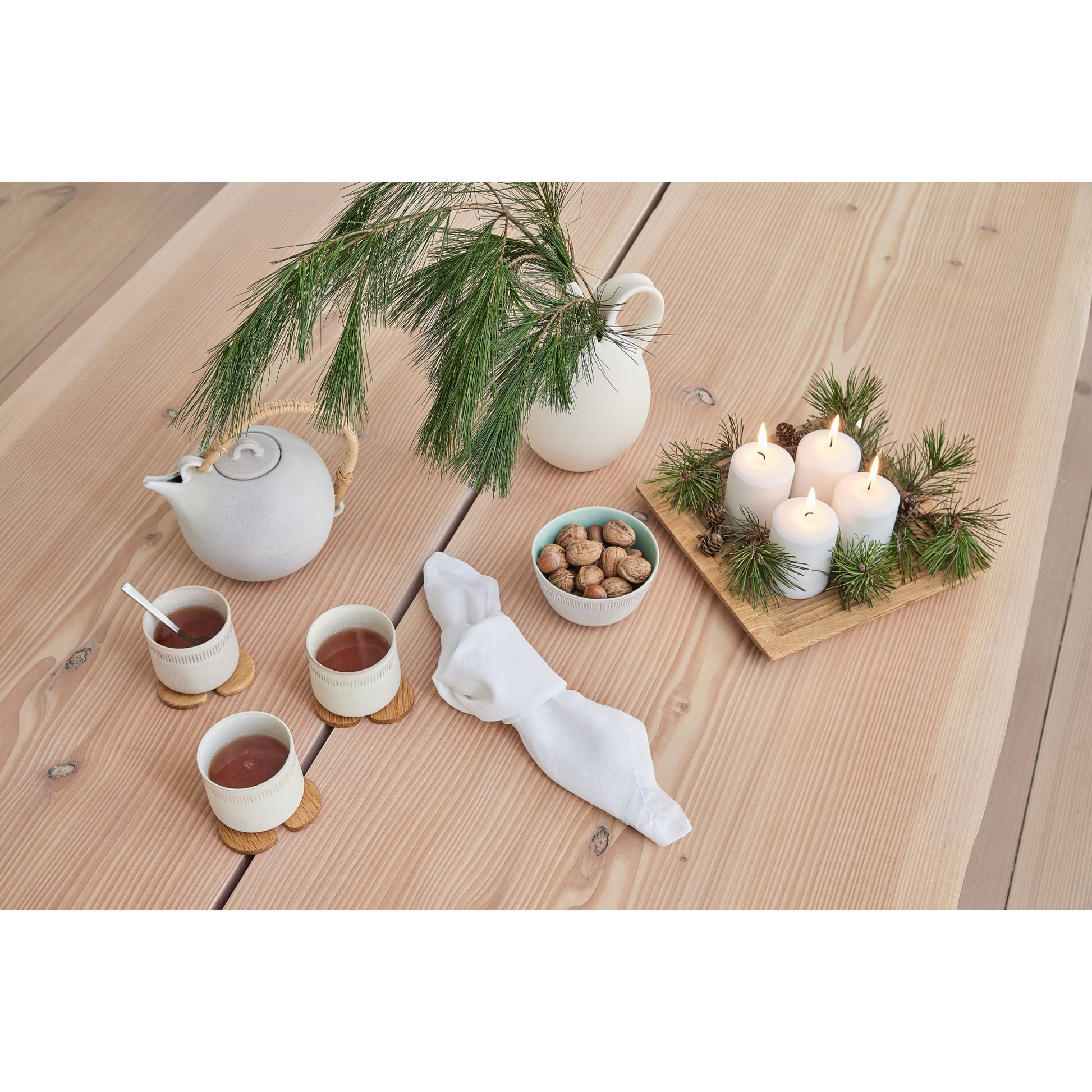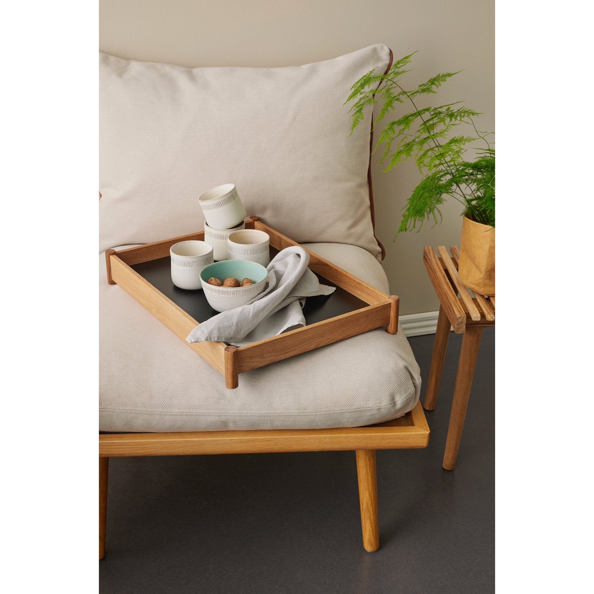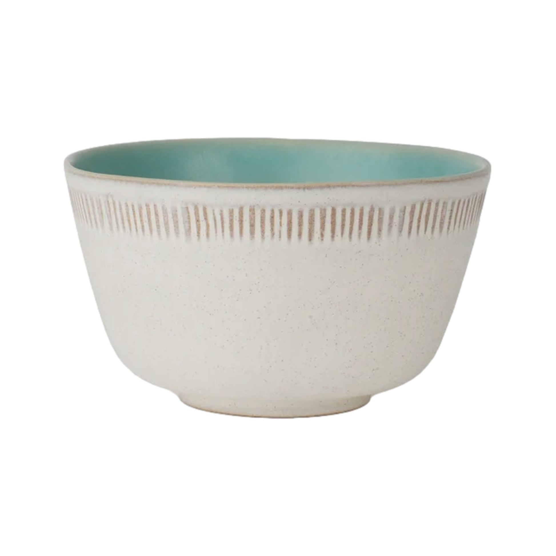 Finding a bowl that is the perfect size can be quite an art. We think the food bowl is the answer. It’s perfect for grapes, snacks or a small portion of porridge. And good for serving dessert in for your guests. In short, the only dish you need day to day. But the food bowl isn’t just a practical and versatile bowl. Time and effort have gone into the design. It is glazed in a way that lets the stoneware peek through - a technique that also creates the discreet stripes, which are repeated along the bowl’s edge. The inside surprises with a bright turquoise glaze, which gives the bowl its distinctive character. The bowl goes perfectly with the cups from Eva Stæhr-Nielsen.