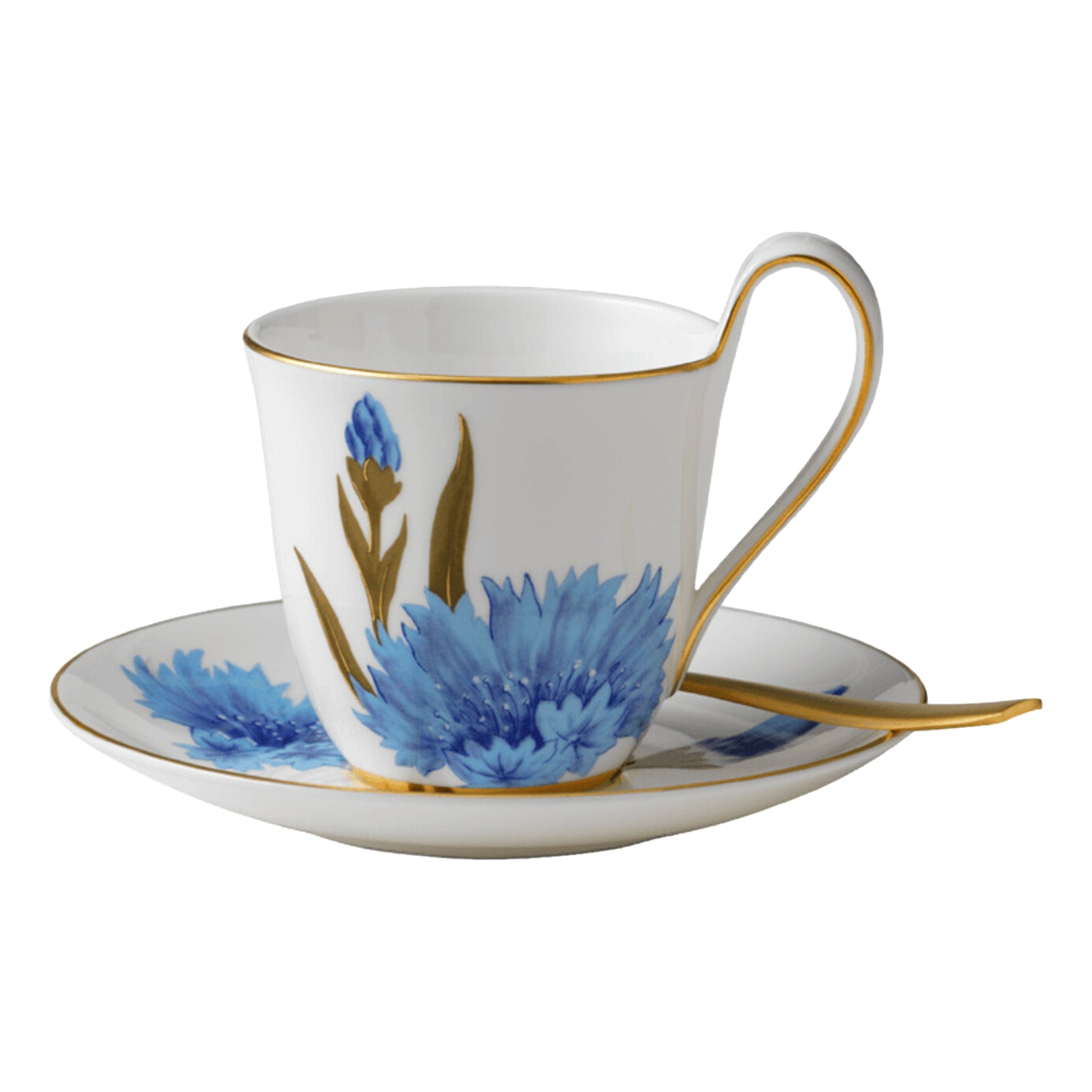 A lush cornflower adorns this high handle cup and saucer with fresh blue petals and two flower buds close to bloom. The beautiful 27 cl / 9.1 Oz Flora cup is ideal for relaxing tea moments or morning coffee. Combine the cup with other pieces from the Flora collection to create a romantic garden of flowers. Flowers have long been a means of communication across time and cultures.
