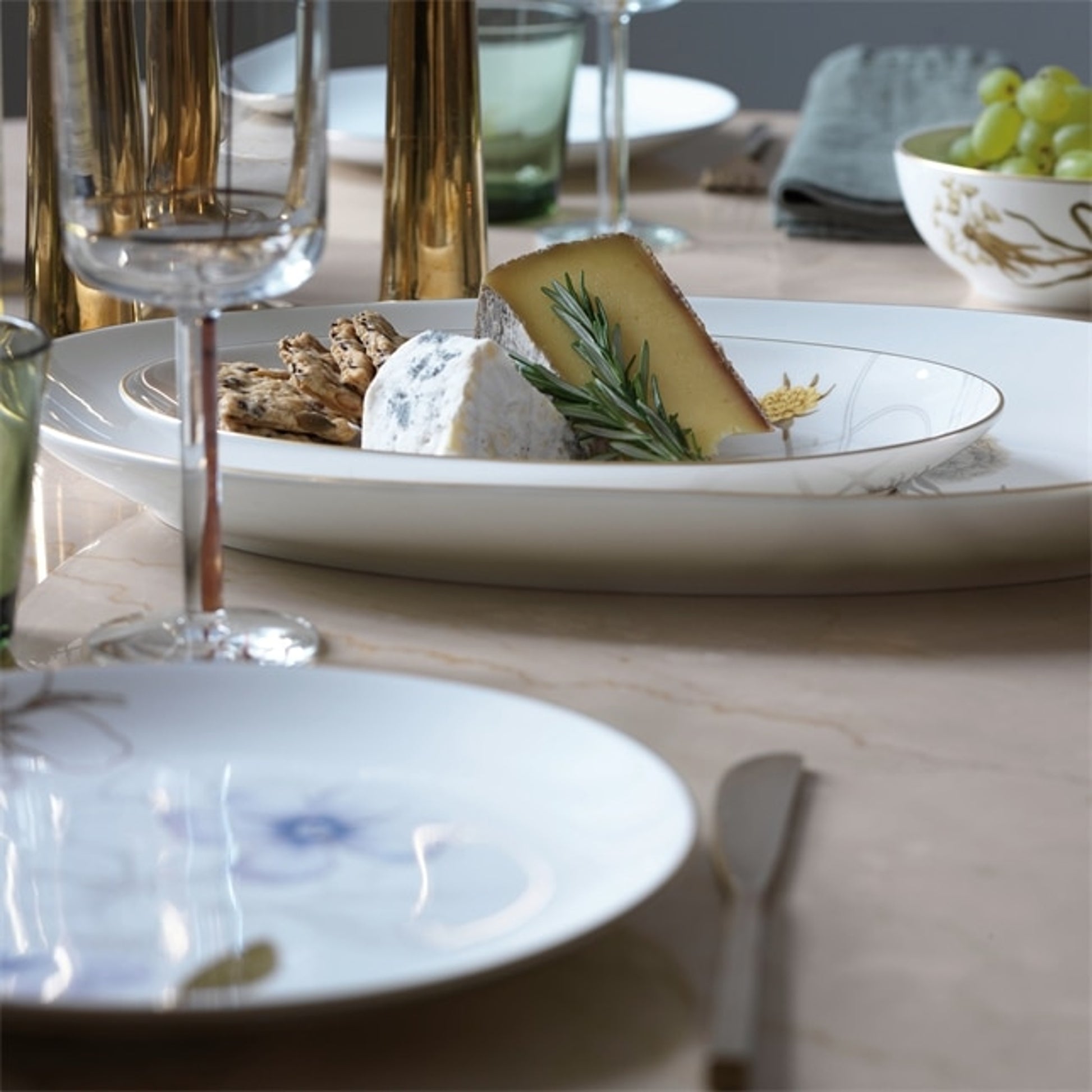 Proposed as The Royal Danish Porcelain Factory trademark in 1775 by Queen dowager Juliane Marie, every piece of Royal Copenhagen porcelain is instantly recognised by the three blue waves on its underside symbolising the Sound, the Great Belt and the Little Belt - the three main waterways of Denmark.