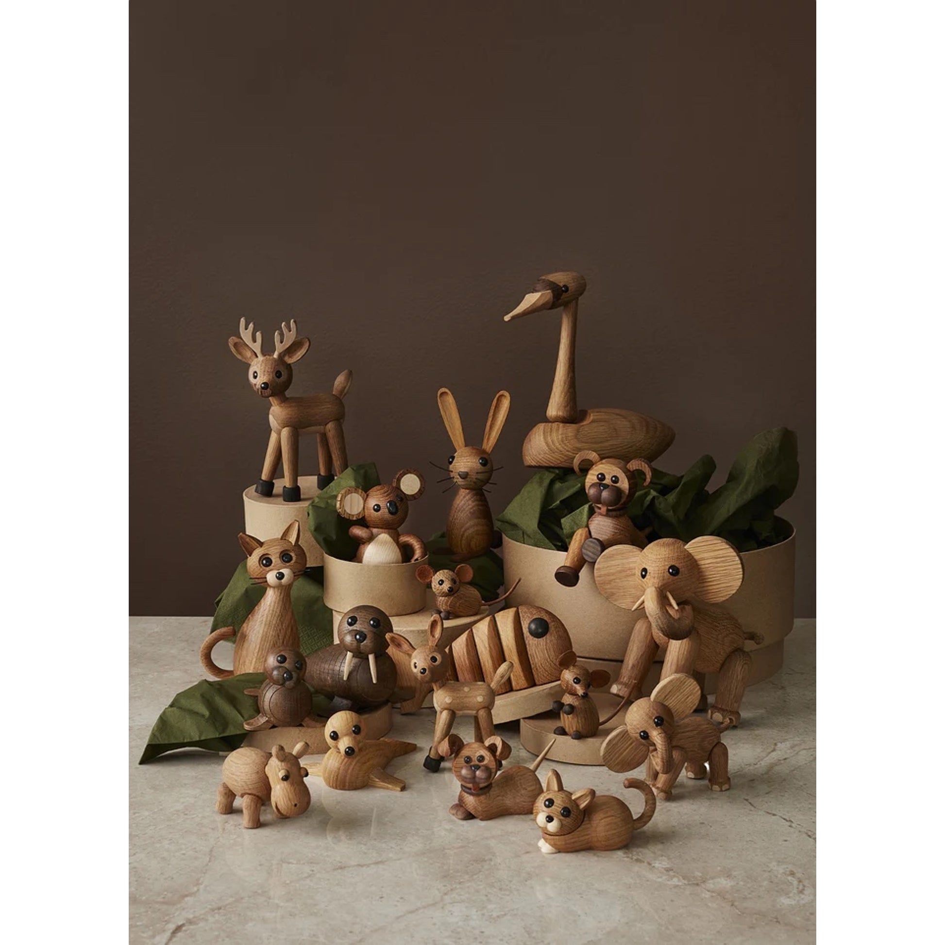The fine figure is made of oak and has thermo-ash paws, and its tail and ears are made of leather. This gives it an incredibly lifelike expression.