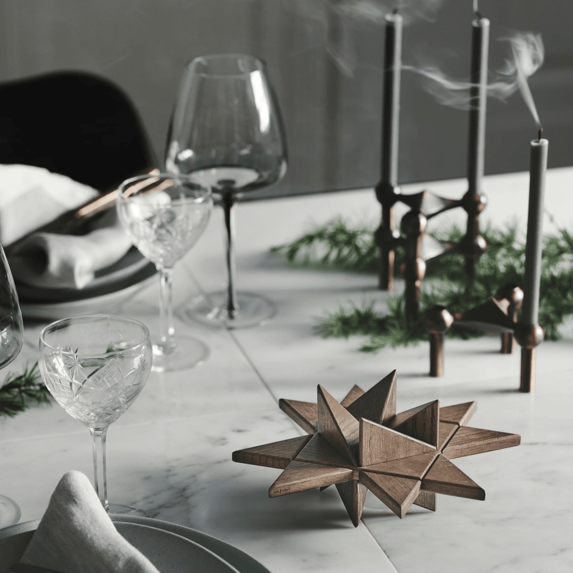 The star has now become a luminous memory of the childhood joy of Christmas – here made in solid oak with soft edges. It finds its natural place in the windowsill or on the Christmas table.