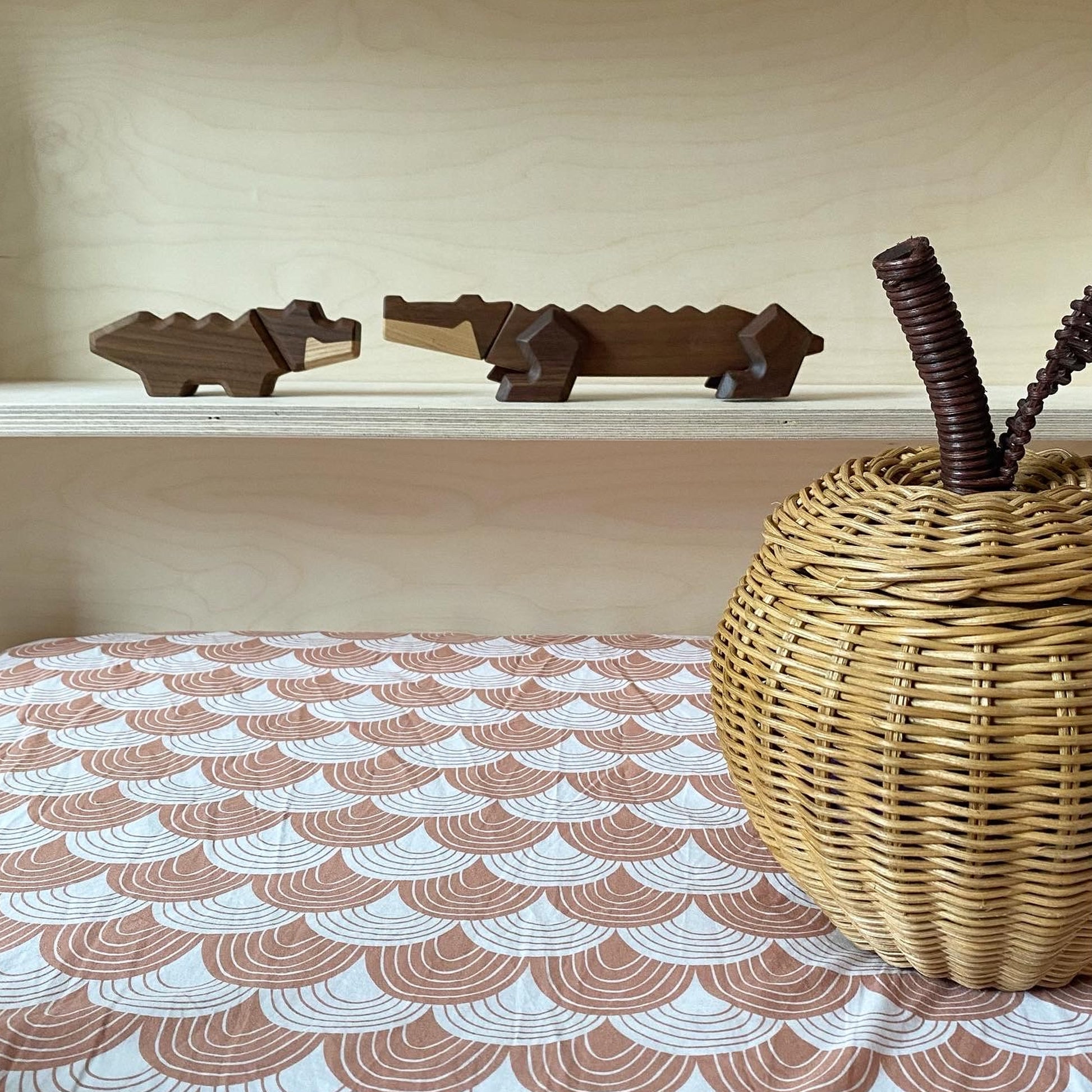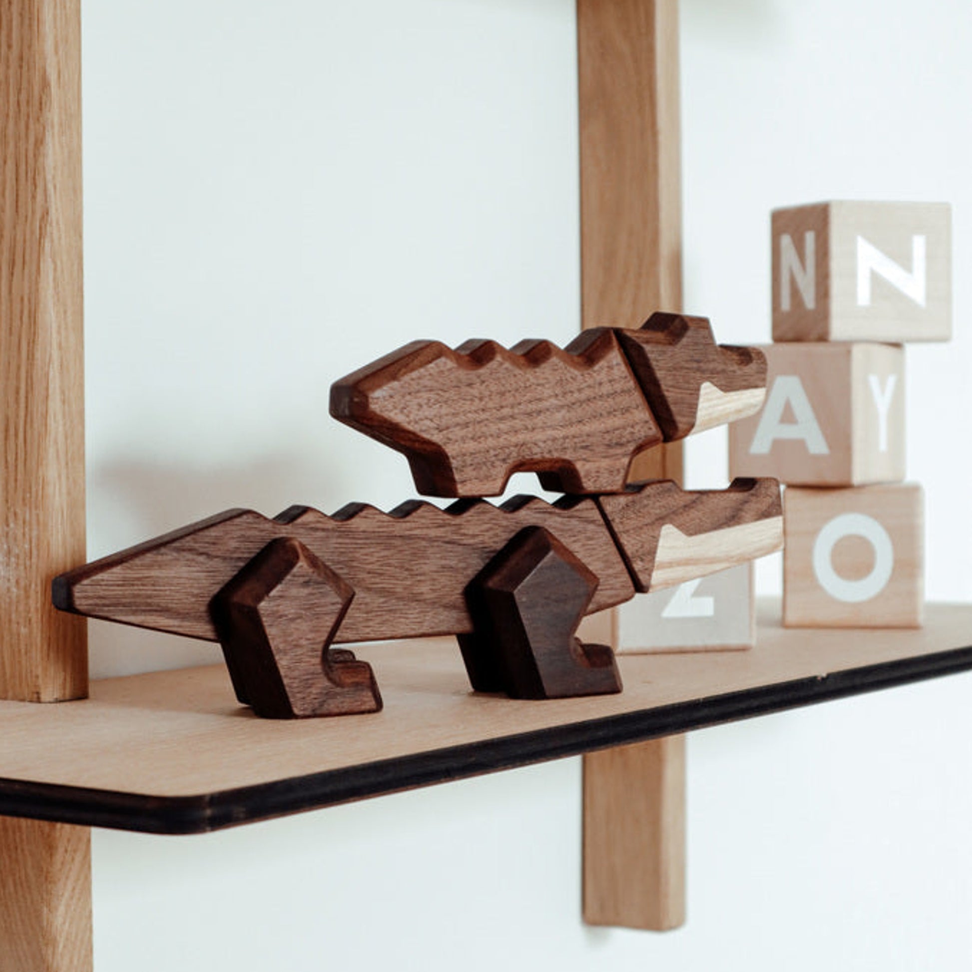 Great Crocodile is made from North American walnut and ash.