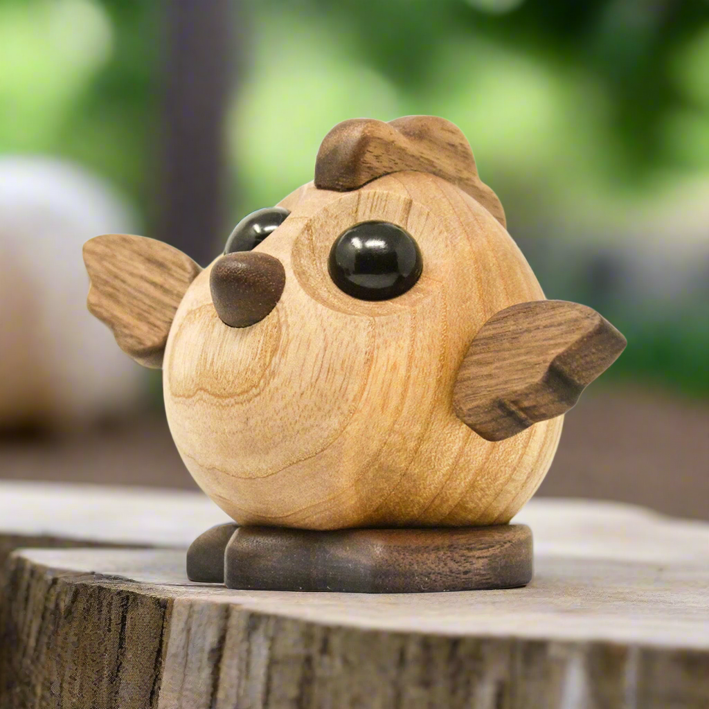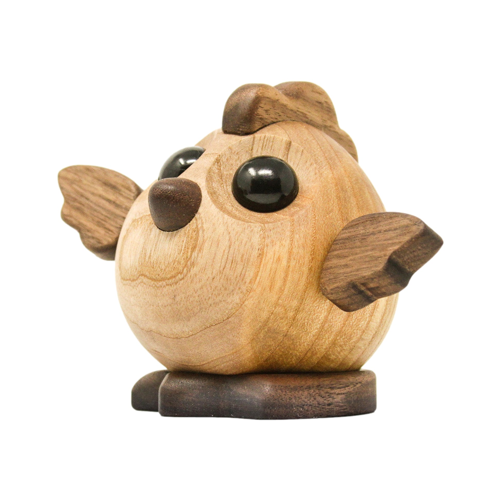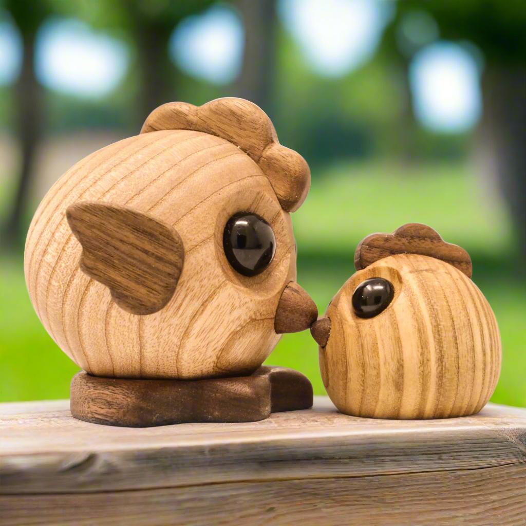 Henny is an adorable wooden figure in two parts. The shape and the movable wings allow her to be animated to assume many different expressions.