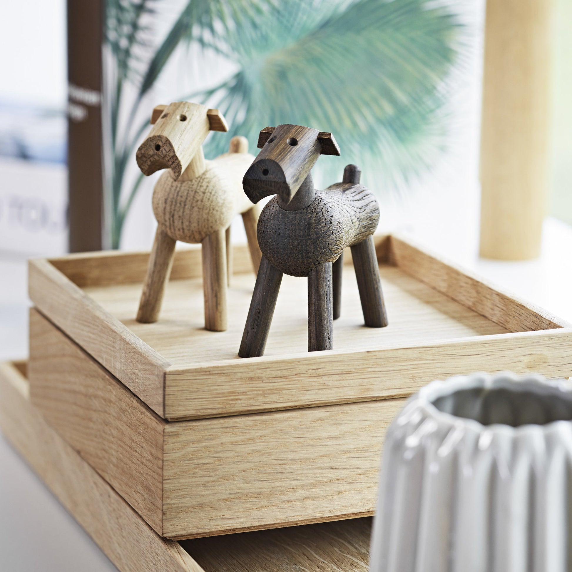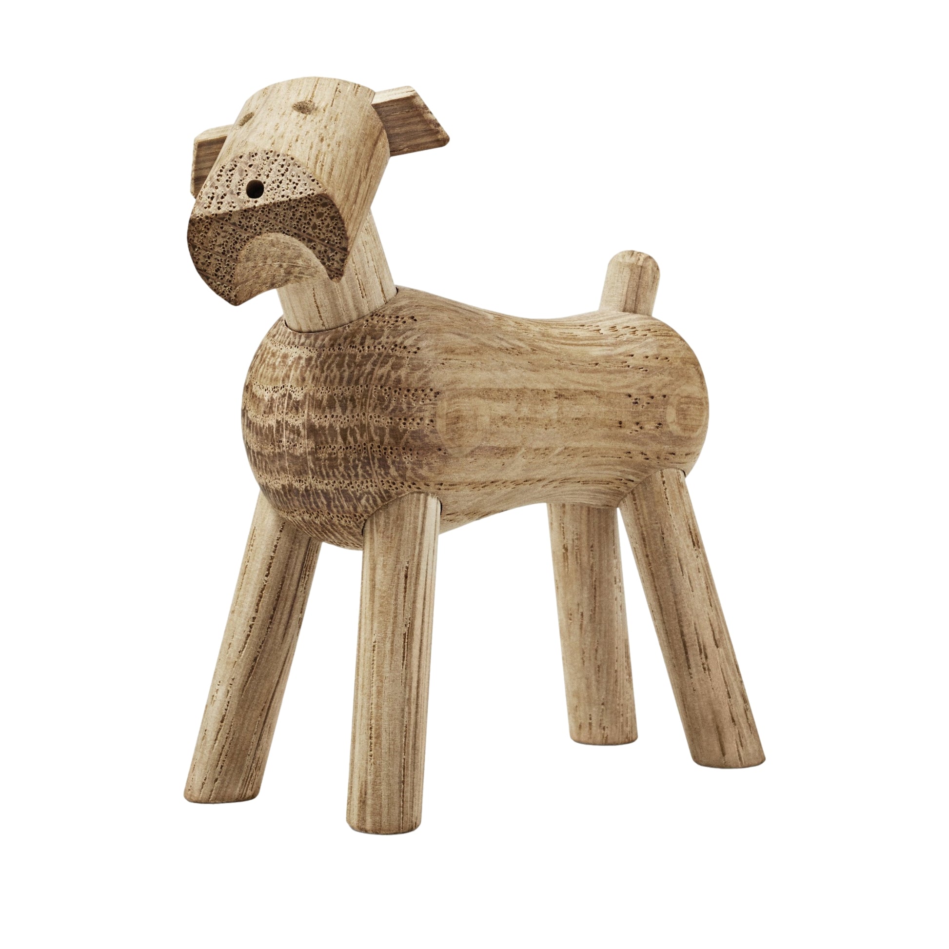 Give a unique version of man's best friend, crafted in oak. Kay Bojesen has created many dogs, and Tim is the name of this quirky little terrier, designed in 1935. With its movable head tilted alertly to one side and its tail in the air, Tim is one of Kay Bojesen's most expressive animals, and he will quickly become a dear friend of the family.