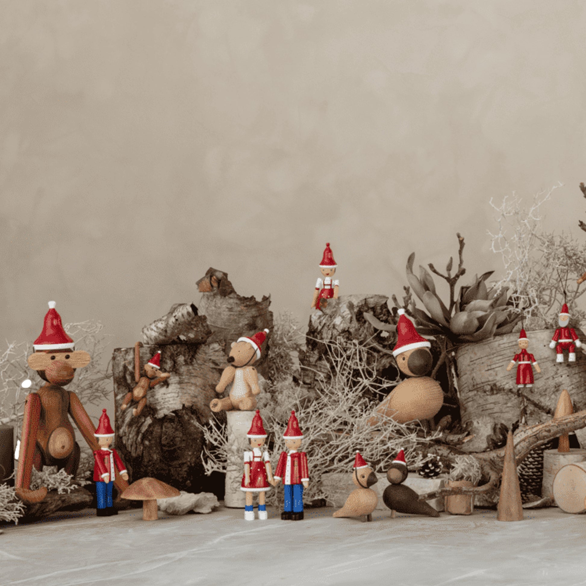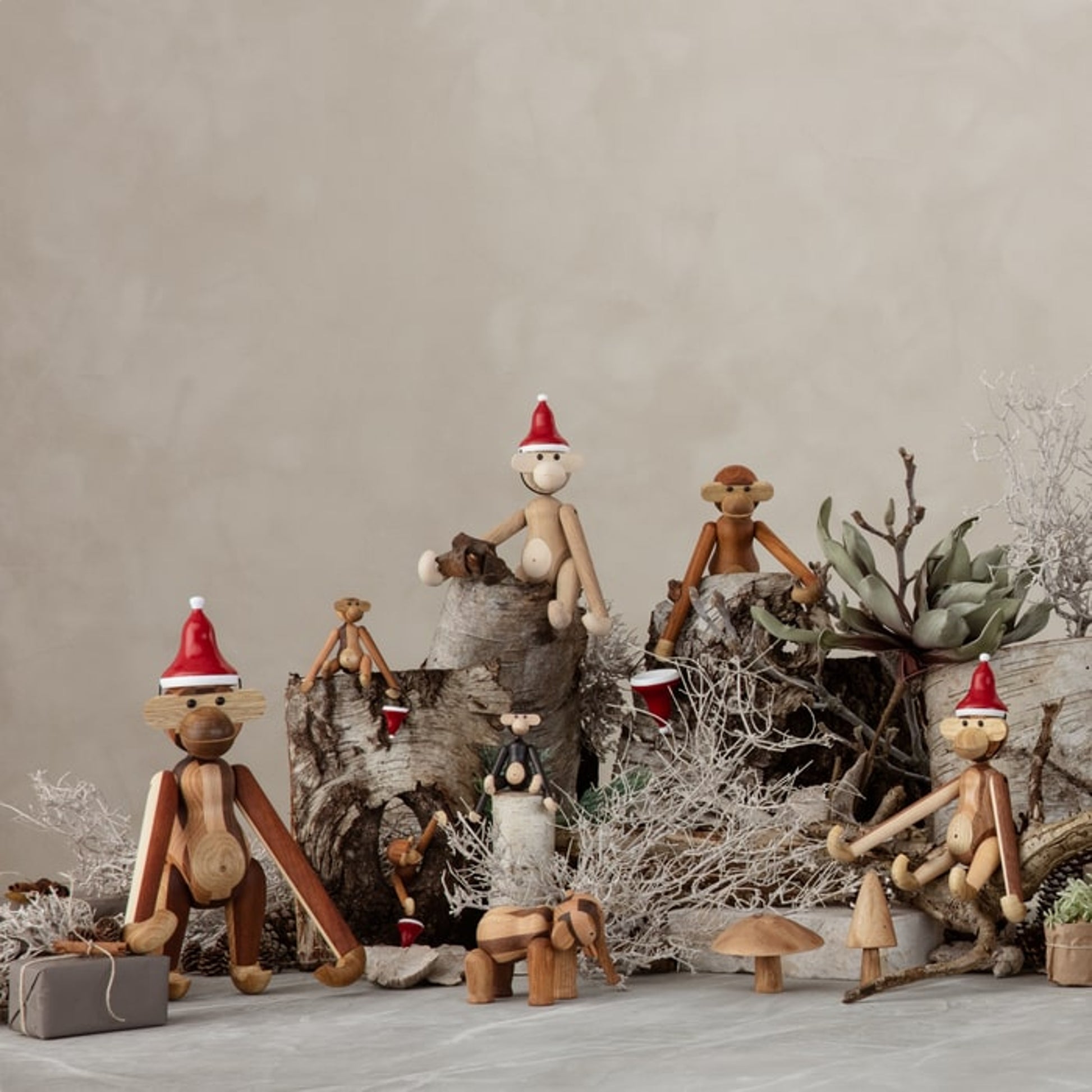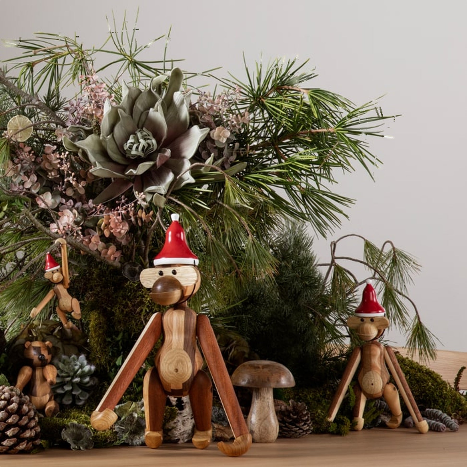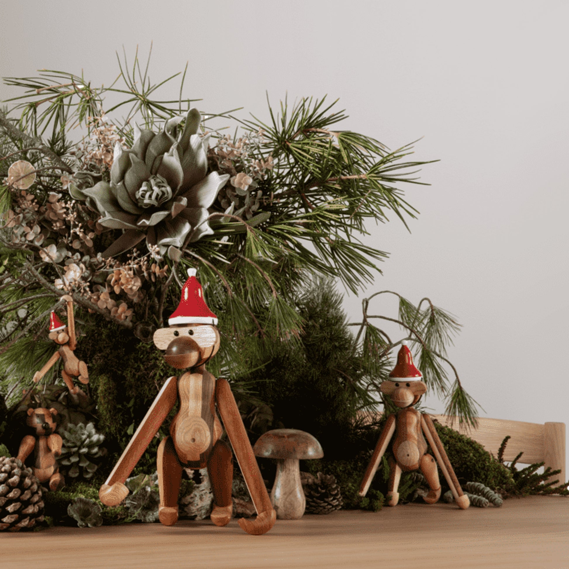 Kay Bojesen creates original stories in wood all year round. And if there is a time of the year that embraces the original story to a very special degree, then it is Christmas, when we share stories and gather around stories that help create celebration and joy for both young and old. The monkey and all the other wonderful wooden animals from Kay Bojesen are also part of the sweet Christmas season and must of course celebrate Christmas with Santa's Cap on.