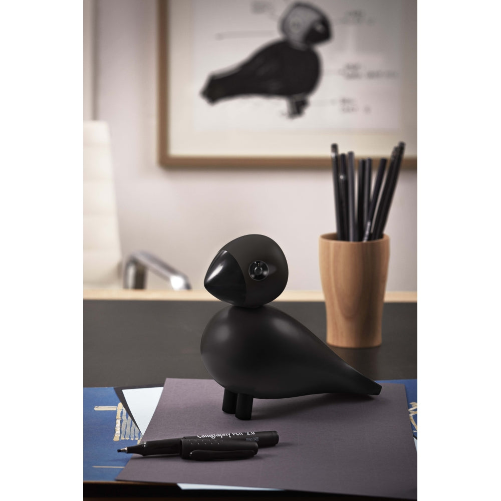 Designed by Kay Bojesen, Raven, the black songbird, is made of painted beech. With its jet-black plumage, Raven is a stylish, classic addition to the otherwise familiar and colorful flock of Kay Bojesen birds.