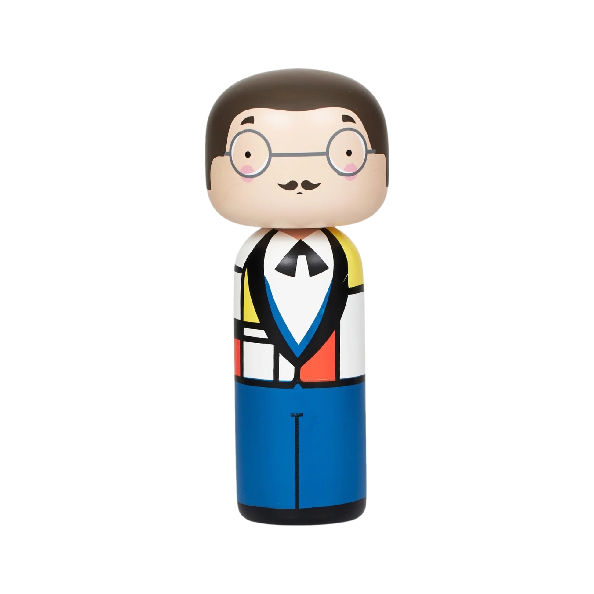 The Piet kokeshi pays homage to the iconic Dutch painter and one of the pioneers of abstract art.The Piet Kokeshi doll features a sleek and modern design with a bold composition of colorful squares and rectangles, all inspired by his signature style. This kokeshi serves as a tribute to the extraordinary legacy of Piet and his influence on the art world and modern design.