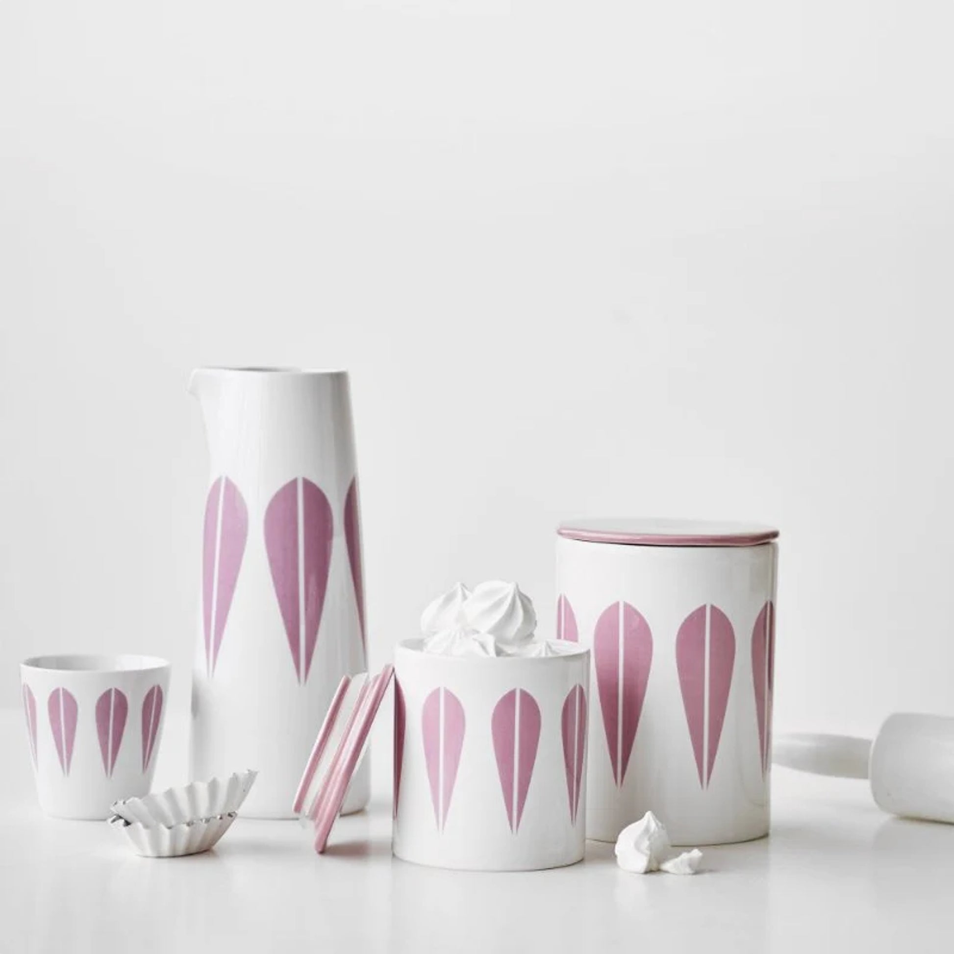 Porcelain tableware bearing the iconic ‘Lotus’ pattern designed in 1965 by Norwegian artist Arne Clausen. Available in multiple sizes and colors. Dishwasher and microwave safe.
