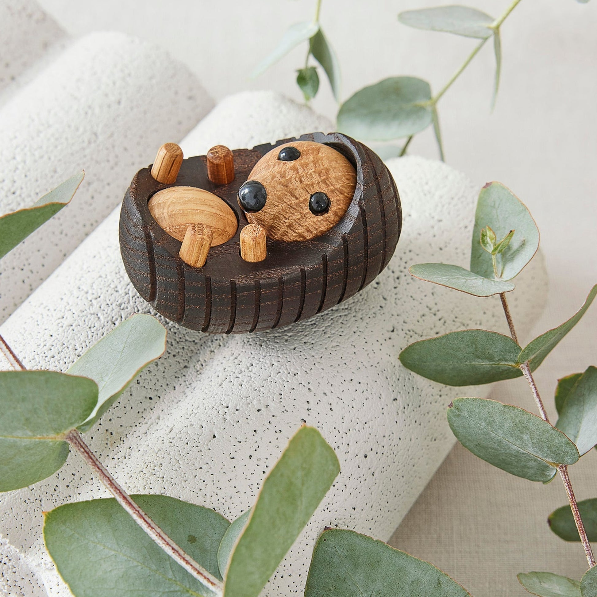 Spike is a charming wooden hedgehog who loves to snooze under the open sky.