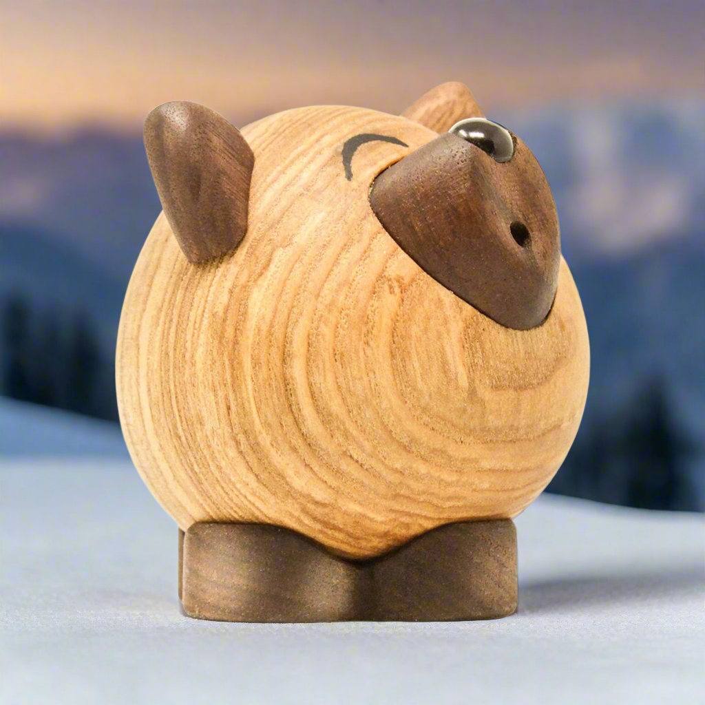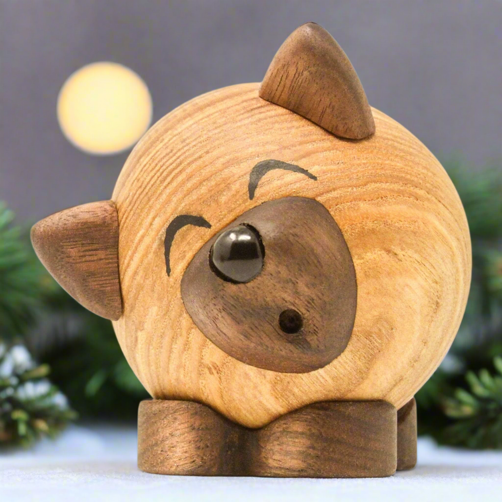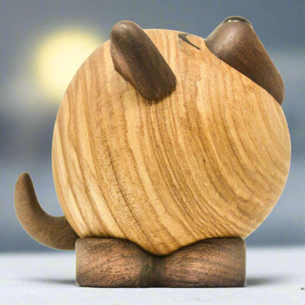 Wulf is an adorable wooden figure in two parts. His movable ears and tail allow him to be animated to several different expressions.