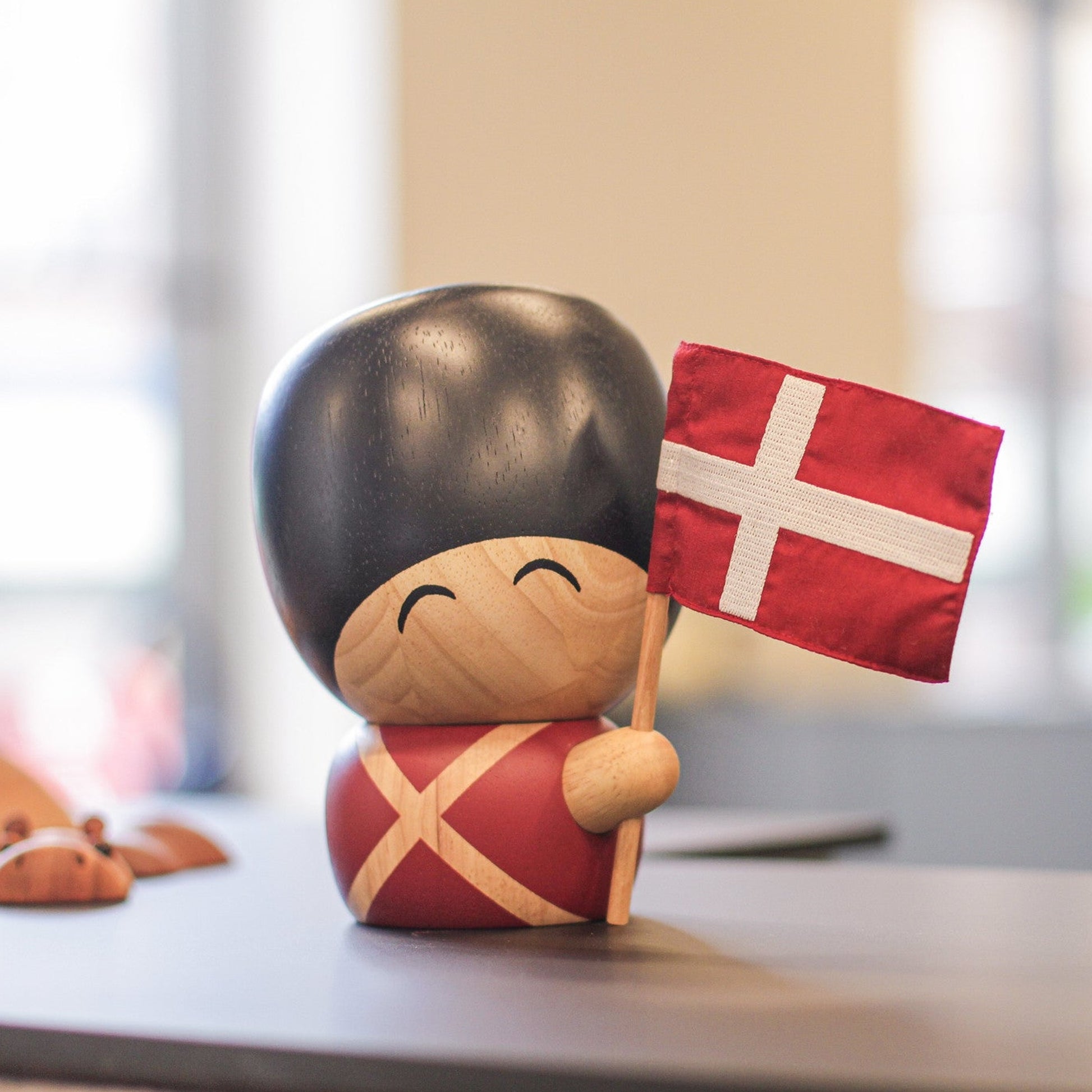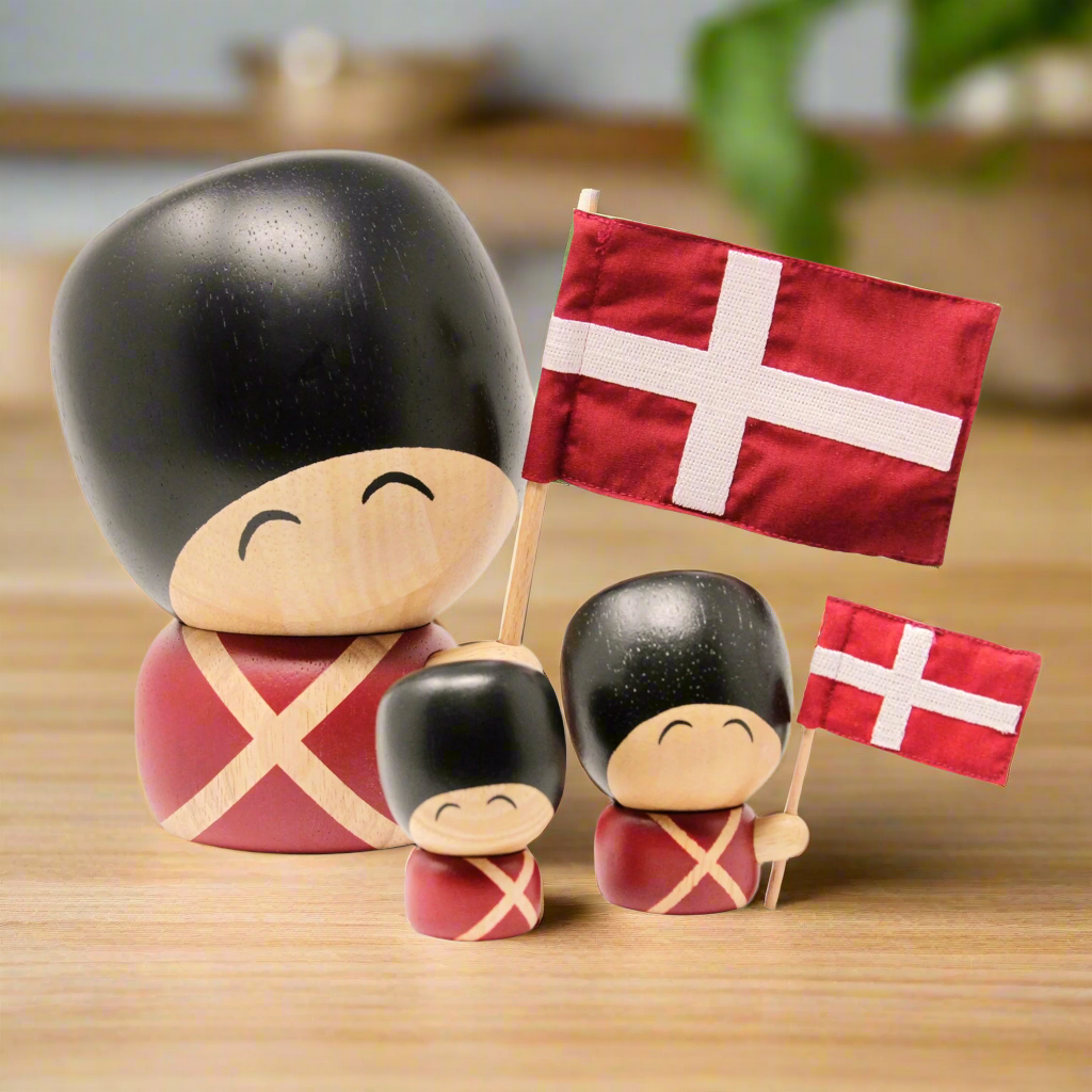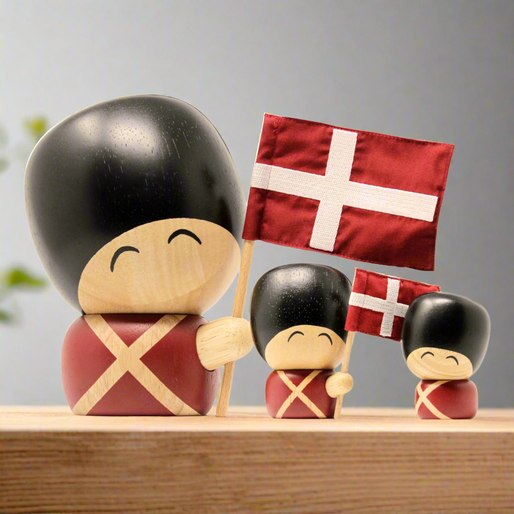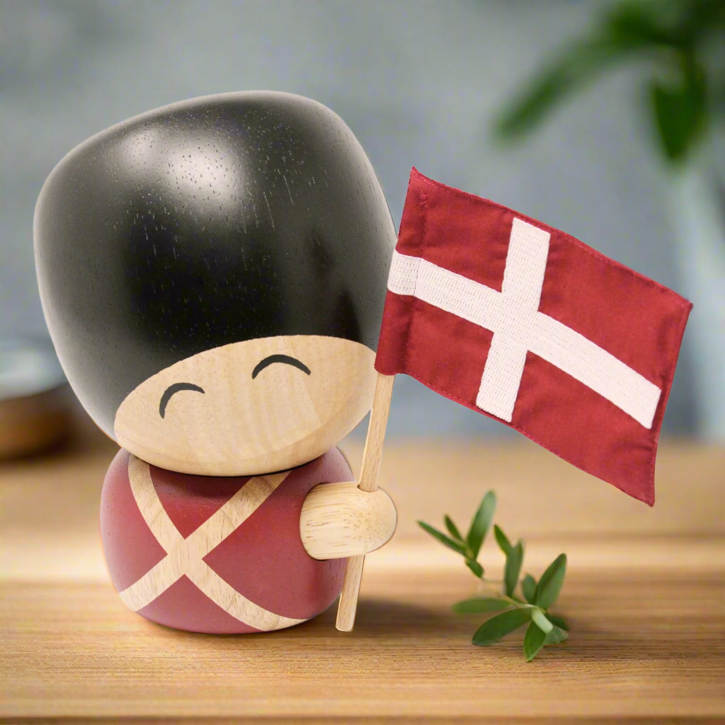 Valdemar is FABLEWOODs XXL Garder in their Garder collection. He is a festive guard who, with his flag, is ready to celebrate birthdays and anniversaries as well as everyday life.