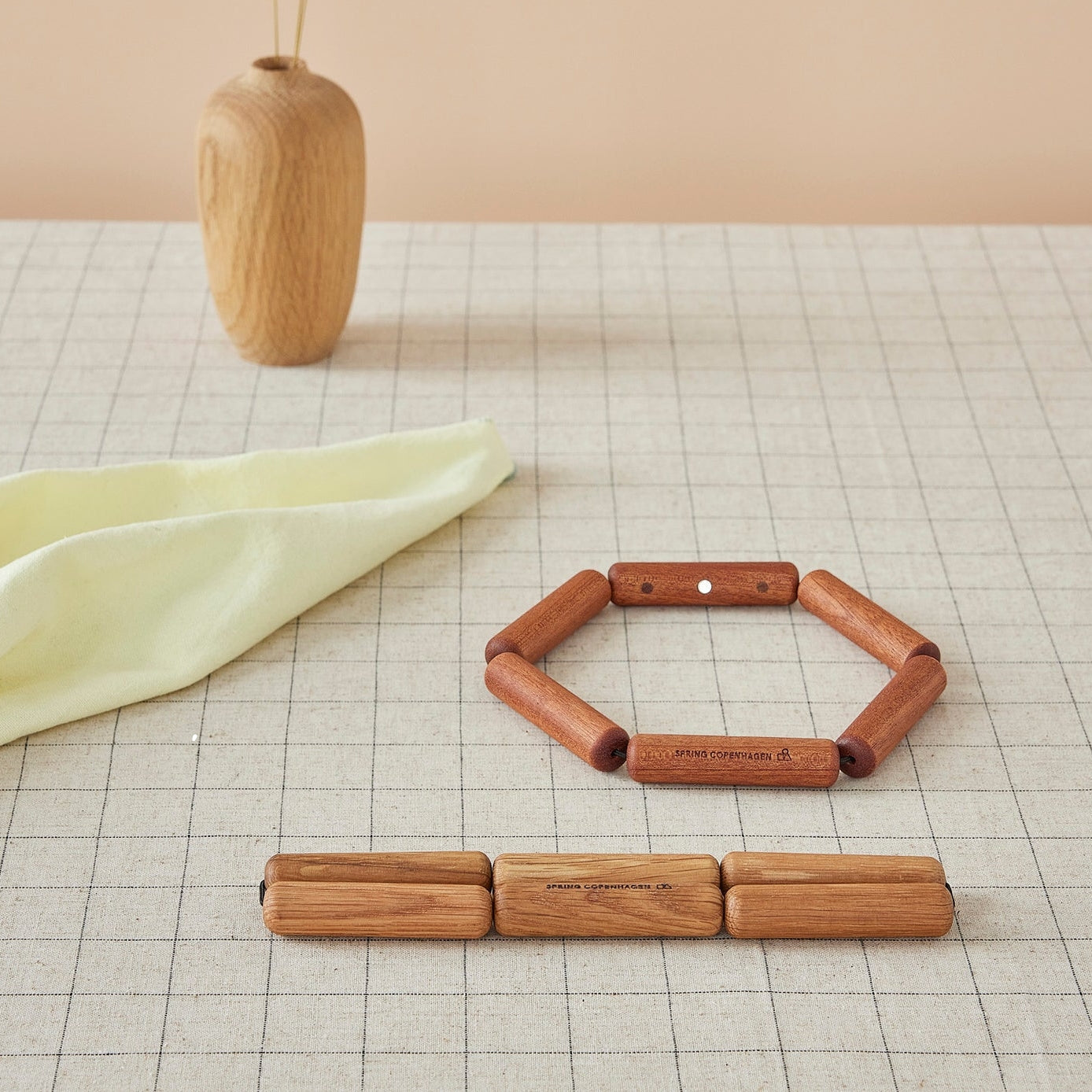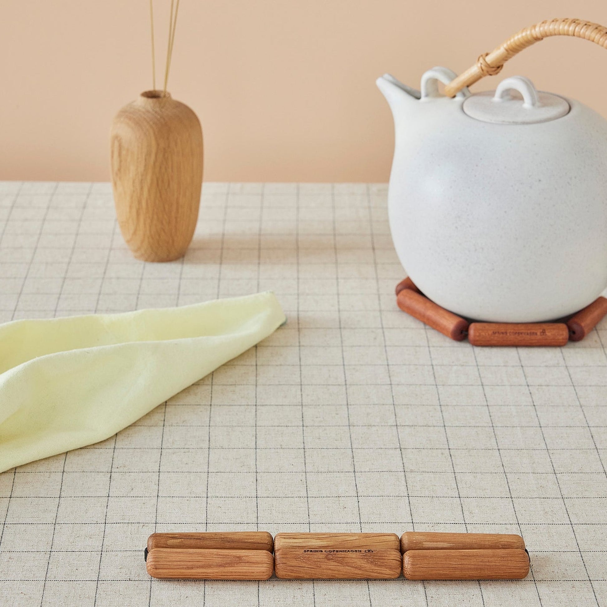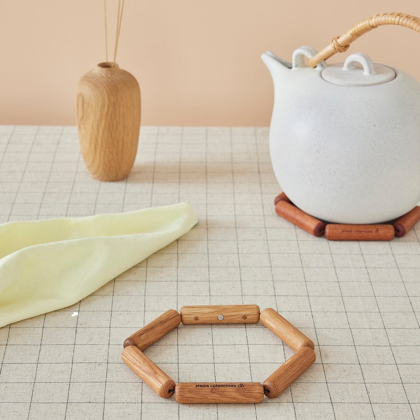 Connect is a stylish table trivet made of oak. It has a minimalist and soft design. The timeless design adds an aesthetic touch to any dining table.