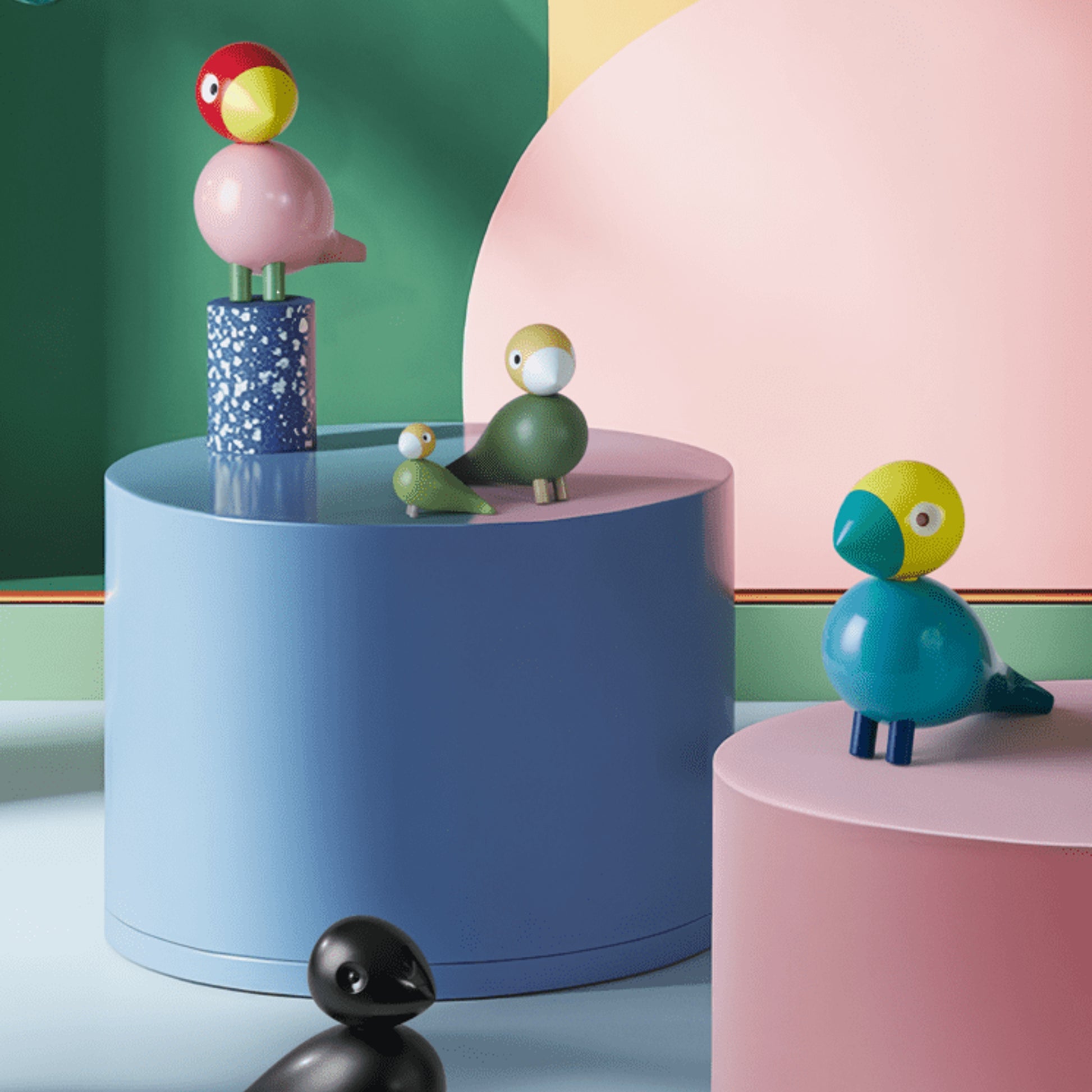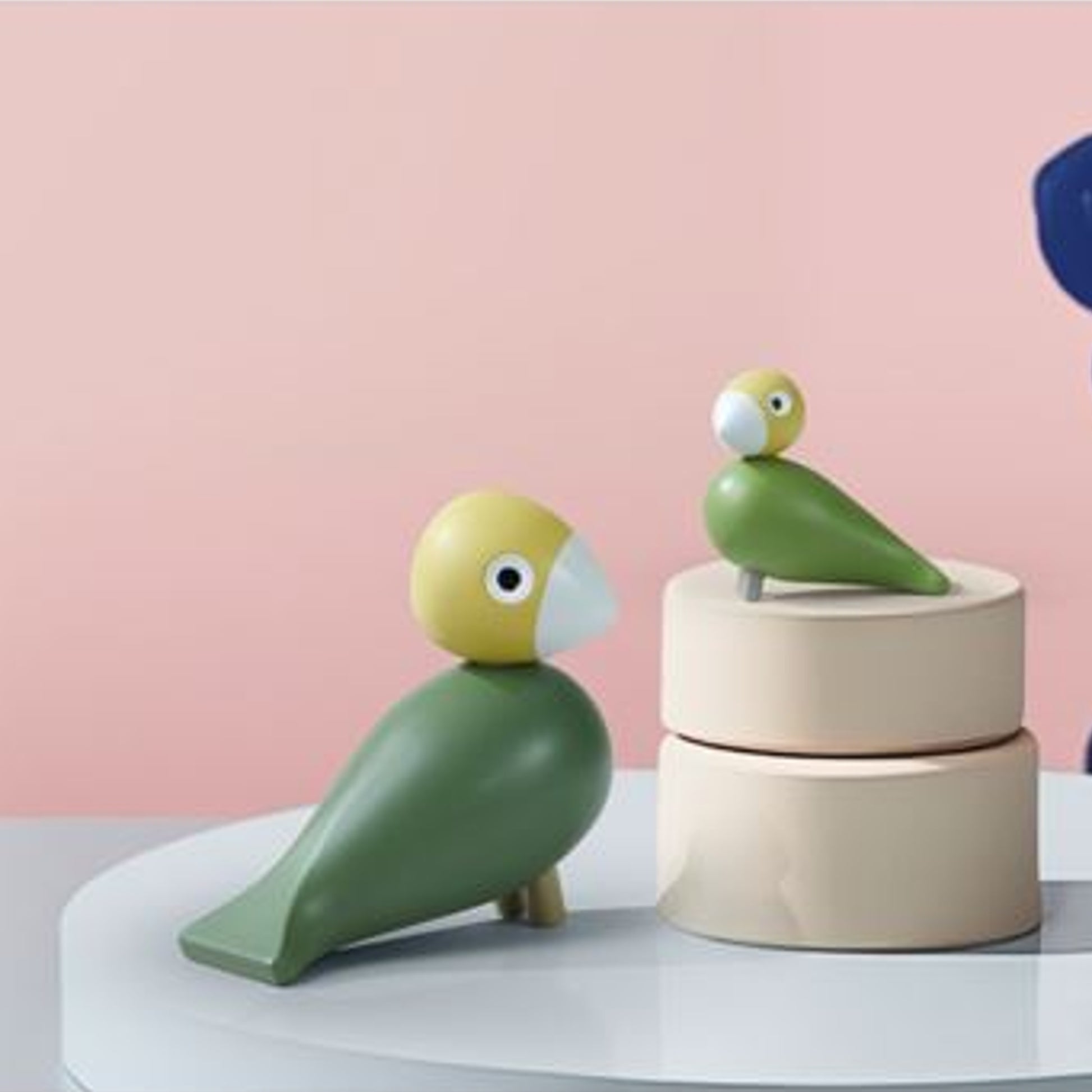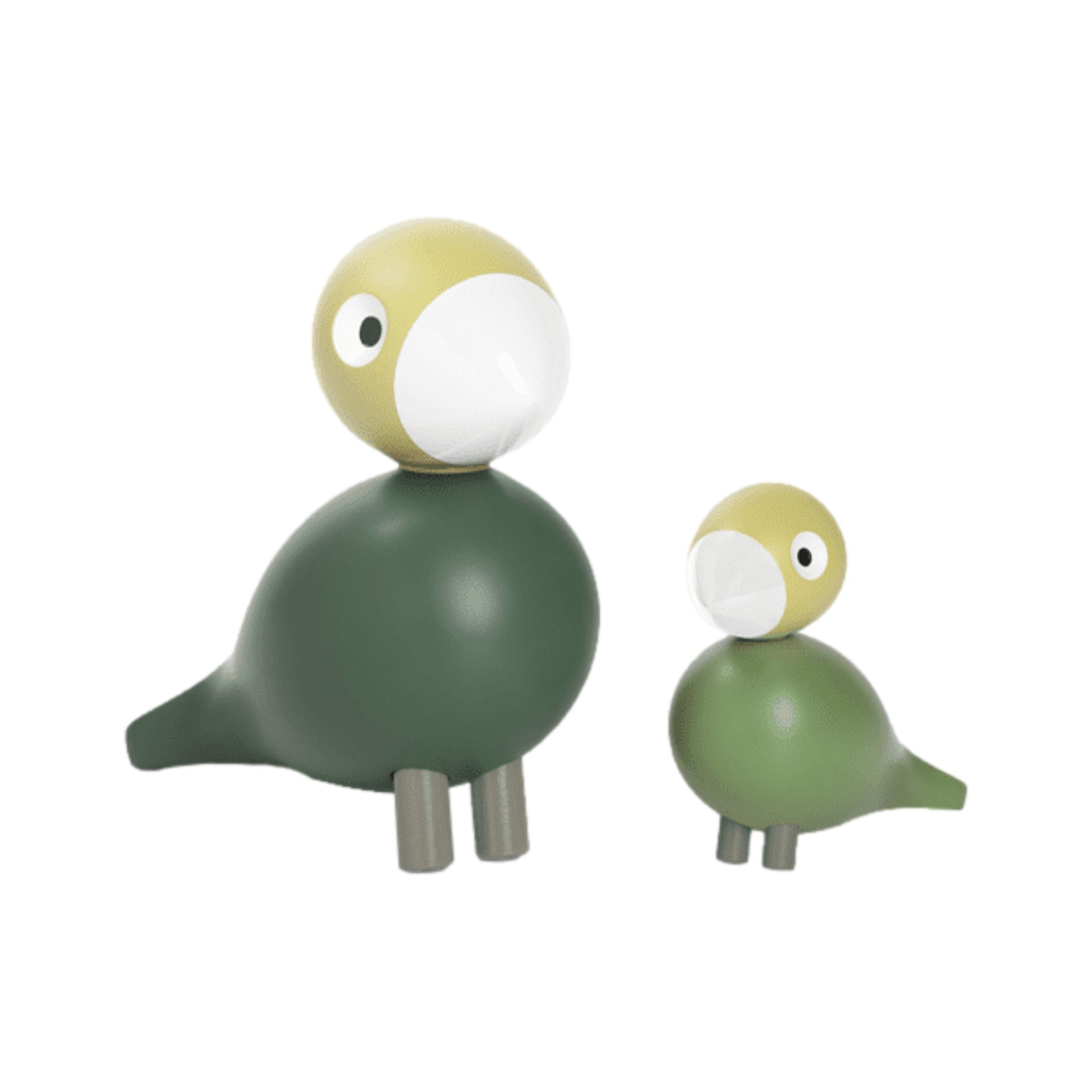 The bird pair is made of FSC®-certified beech wood and consists of a large and a small bird, which you can choose to use together or separately to express your unique story, exactly where you are in life. The large bird comes in a subdued dark green and is slightly smaller than the others in Kay Bojesen's popular series of songbirds, while the small bird with a body in a slightly warmer greenish yellow is the same size – and exactly as cute – as the birds you know from the Kay Bojesen Babies series mobile with birds and balls in wood, painted in different colors.