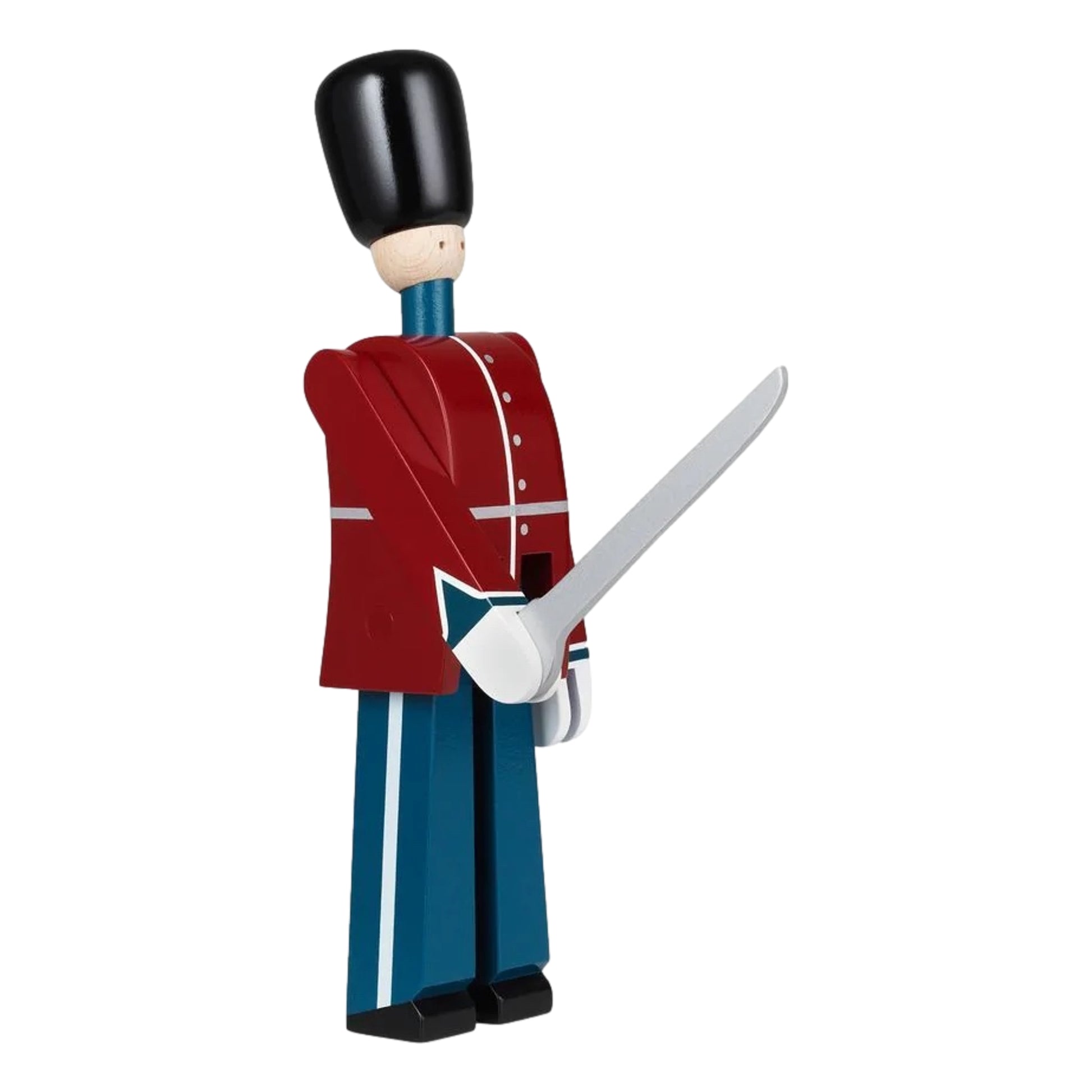 Kay Bojesen's Royal Life Guard Regiment consisted of several different soldiers and the Officer was part of the troops. Kay Bojesen created the soldiers for the first time in 1940 on the occasion of King Christian the X’s 70th birthday as a tribute to the Danish king. At that time, they stood guard as one meter tall soldiers outside Kay Bojesen's shop in Bredgade. In 1942, Kay Bojesen created the smaller figures in the same size as we know them from the Postman and the Police Officer. The officer carries his saber and stands as the leader of the Regiment.