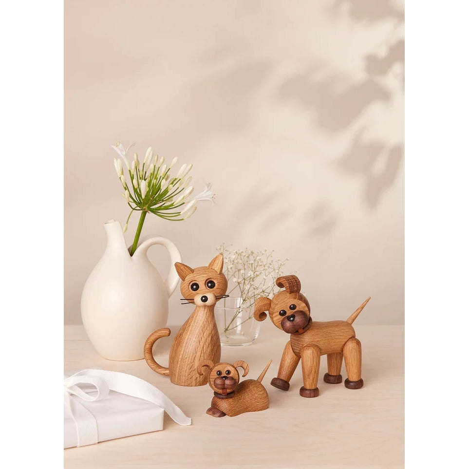 Designer Chresten Sommer has had cats himself and is particularly fascinated by them. One minute they are loving and sociable, the next minute they are wild predators on the hunt. They can fend for themselves. The special relationship between humans and cats probably stems from the cat's independence. They remind us of ourselves. It seldom submits to humans in the same way as a dog - and its personality and charisma have always given it a special status among domestic animals. Lucky is the sequel to the dog Happy. And although Lucky has plenty of independence, we can guarantee that Happy and Lucky are great friends and can easily stand side by side on your window sill.