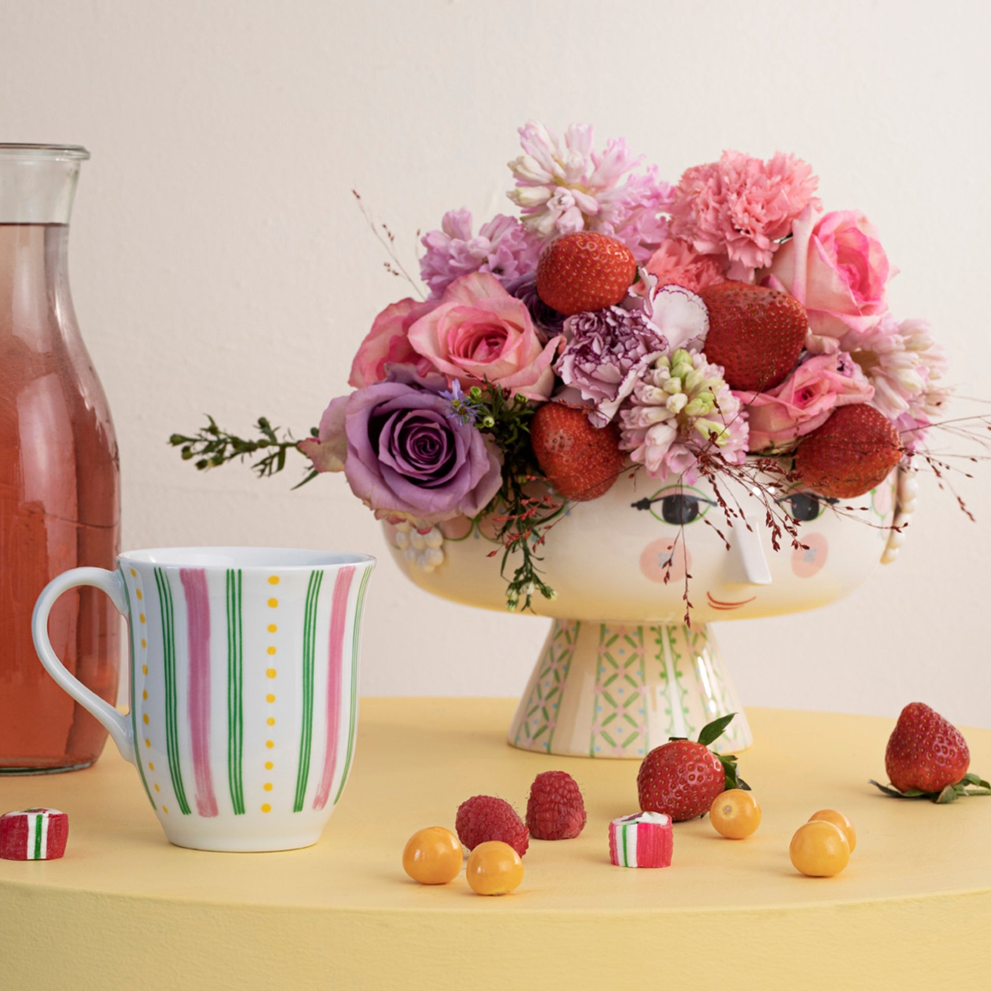 Attractive Eva, pink ceramic decorative bowl. Fill the bowl with Christmas goodies, a variety of nuts, dried apricots, sweet dates and maybe a selection of homemade Christmas confectionery. The pattern of the Eva decorative bowl was inspired by one of Wiinblad’s early illustrations.