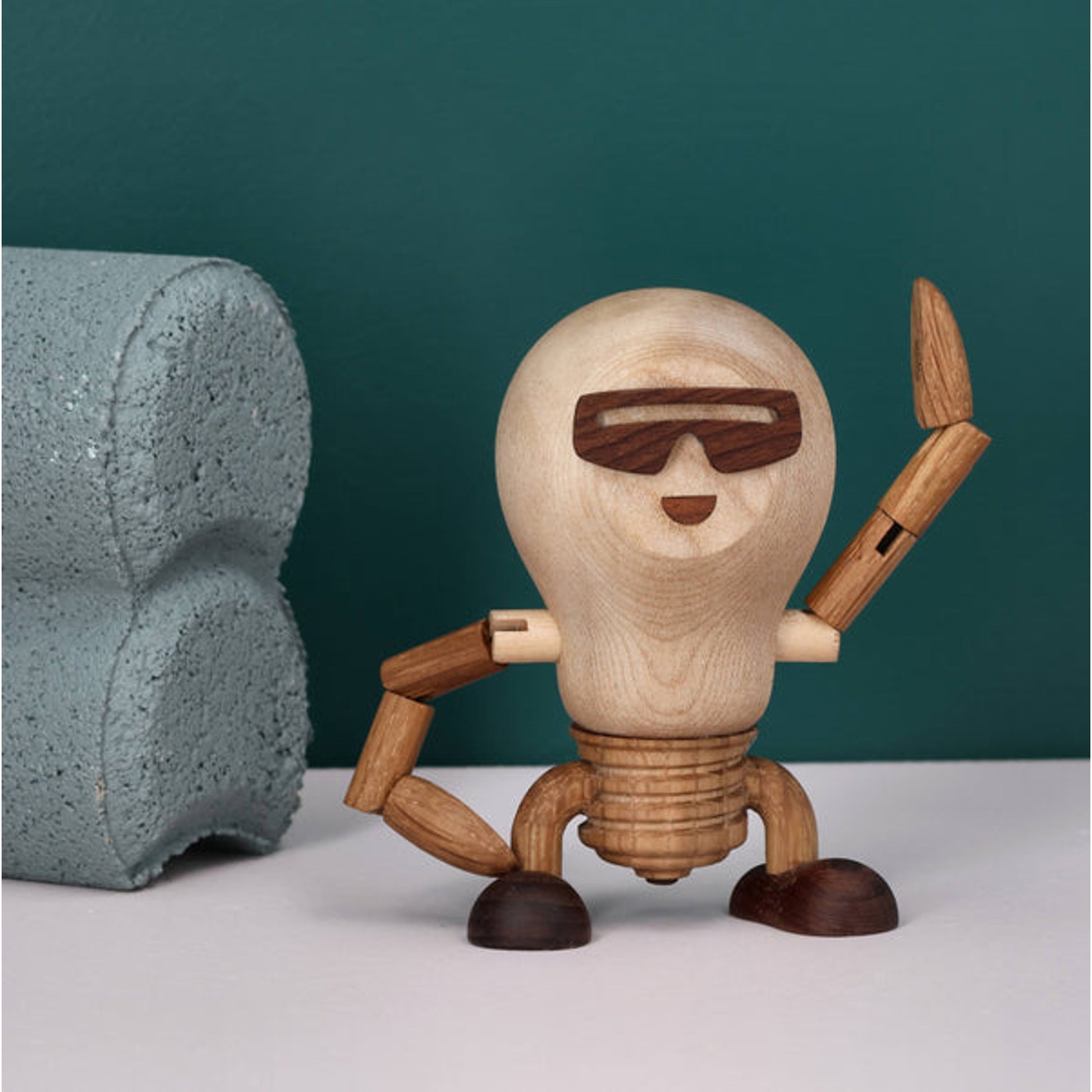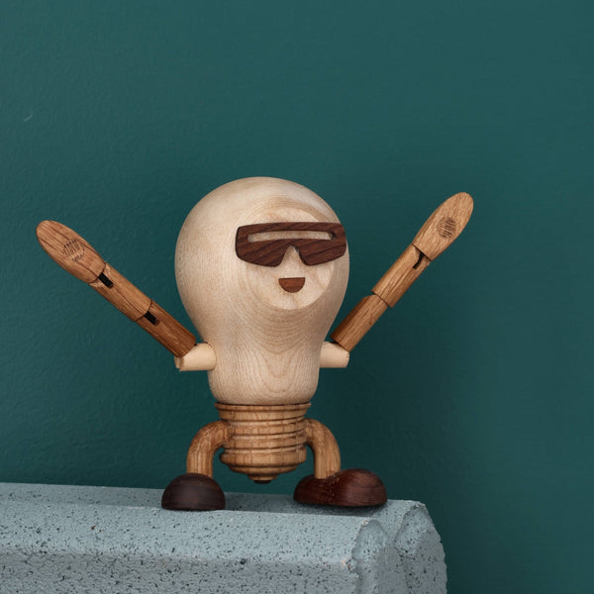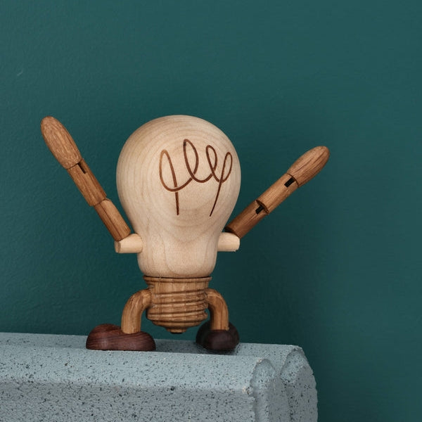 Buster Bulb is part of Woodies, who celebrate everyday life with their humorous and quirky wooden figures.