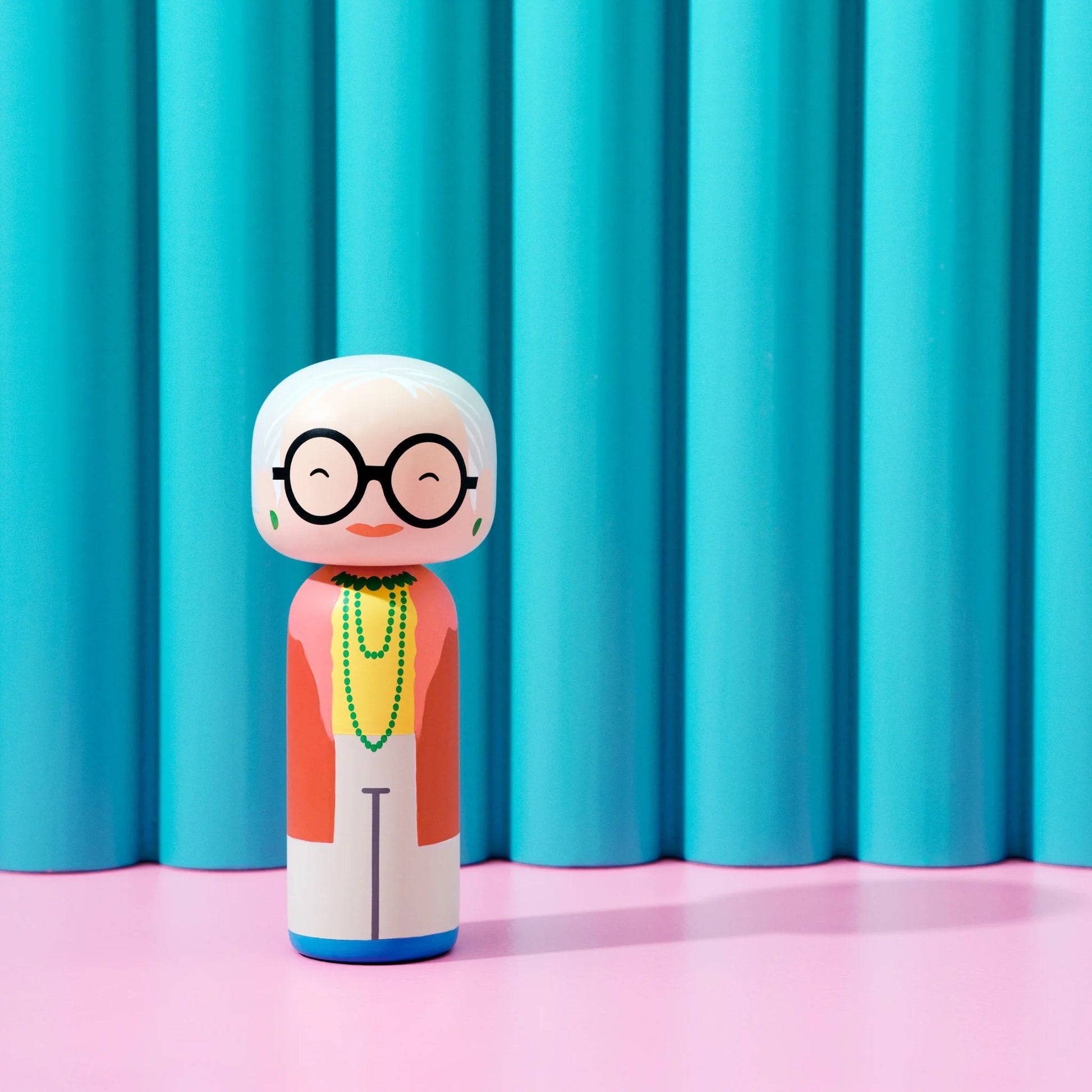 The Iris Kokeshi doll celebrates fearless self-expression. With oversized round glasses, a vibrant outfit, and layered necklaces, this Kokeshi captures the essence of  eclectic and bold style. A tribute to individuality and creativity, the doll embodies the spirit of breaking fashion rules and embracing personal expression with confidence and charm.