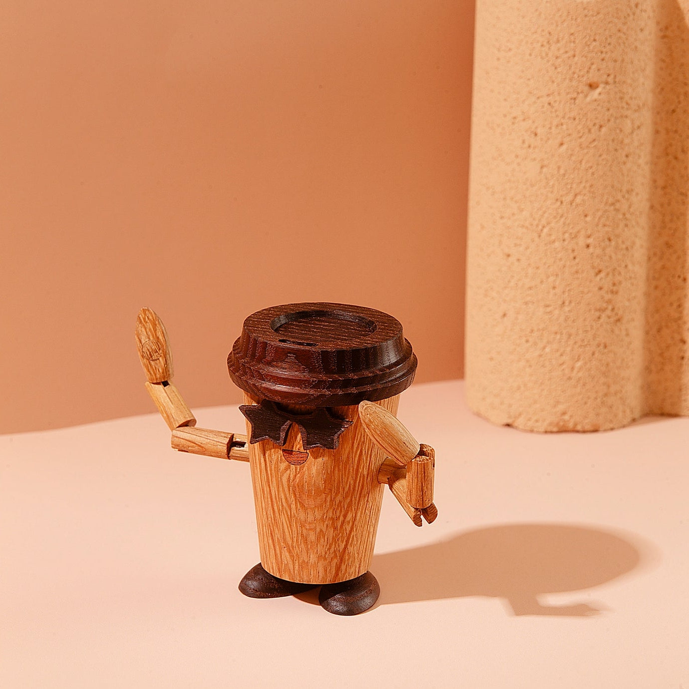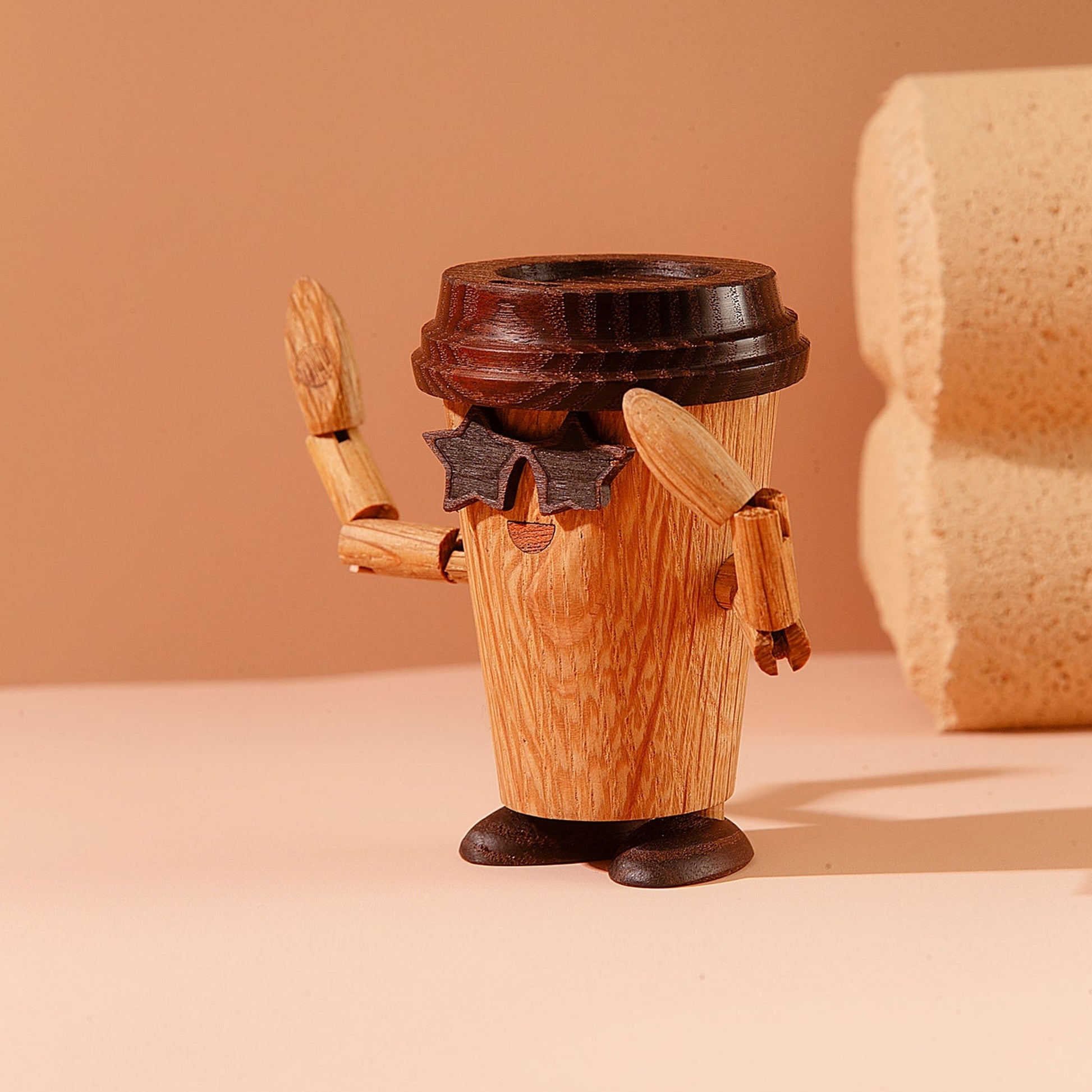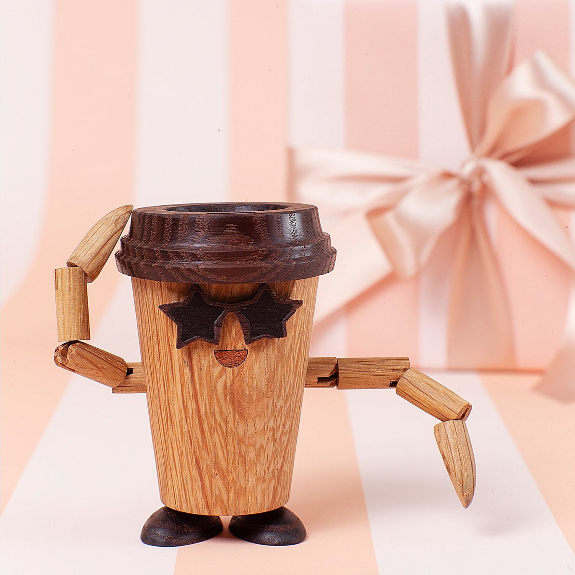 Esther Espresso fait fièrement partie de la collection Woodies, une charmante série de figurines en bois originales conçues pour égayer votre journée.