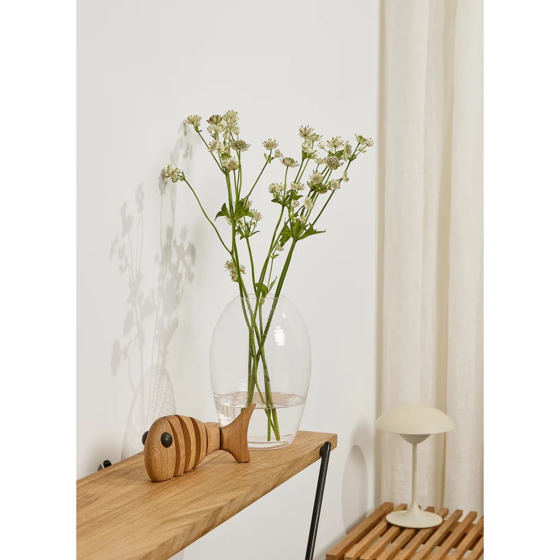 Vous voyez et ressentez clairement le langage de conception rond et doux de Kay Bojesen. Les collectionneurs et les connaisseurs reconnaîtront immédiatement le décapsuleur qui est maintenant relancé en noyer foncé - un beau contraste avec l'acier brillant. Un petit logo discret est gravé dans le bois traité à l'huile. Il accentue le grain du bois et ajoute de la durabilité.