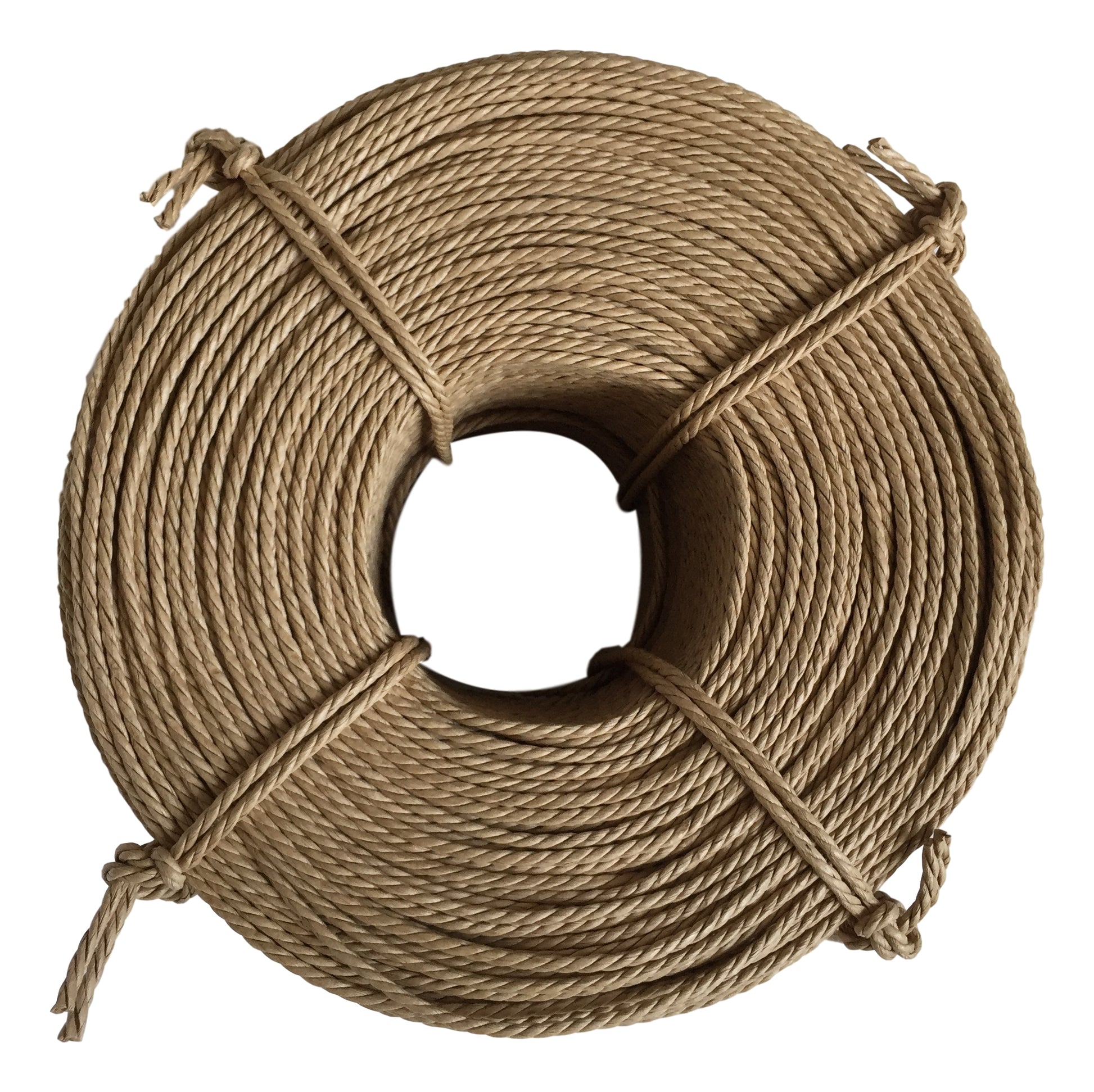 Une bobine de cordelette en papier de qualité chaise, fine et nouée, de 3,0 mm de diamètre, pouvant être utilisée pour rénover les assises tissées de certaines chaises et fauteuils danois emblématiques du milieu du siècle.