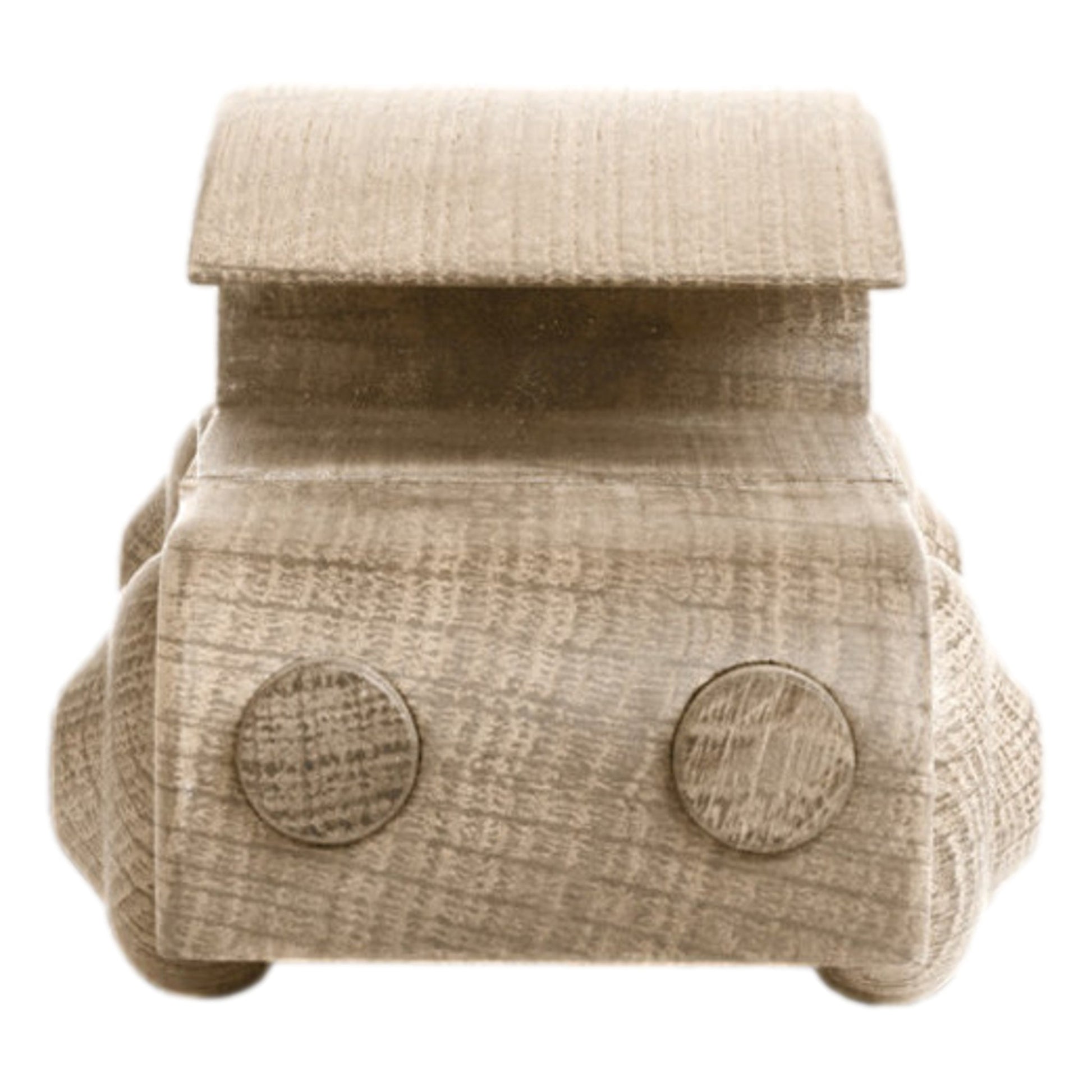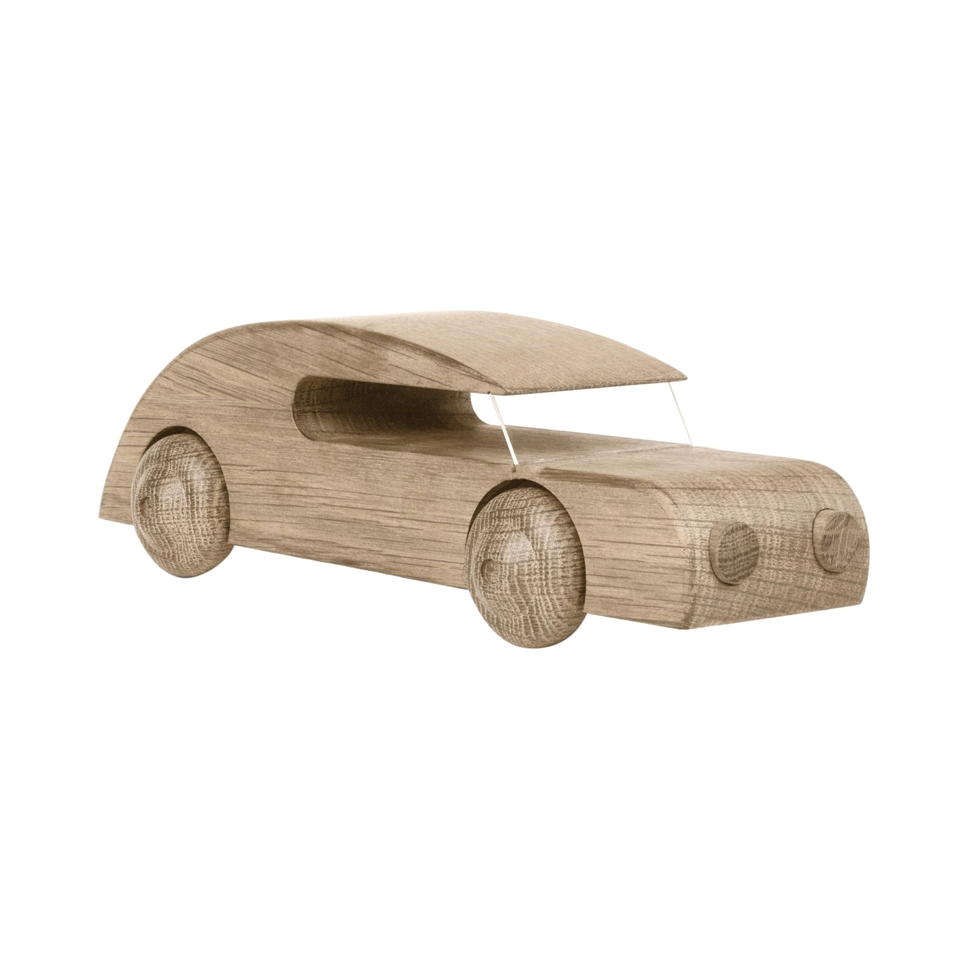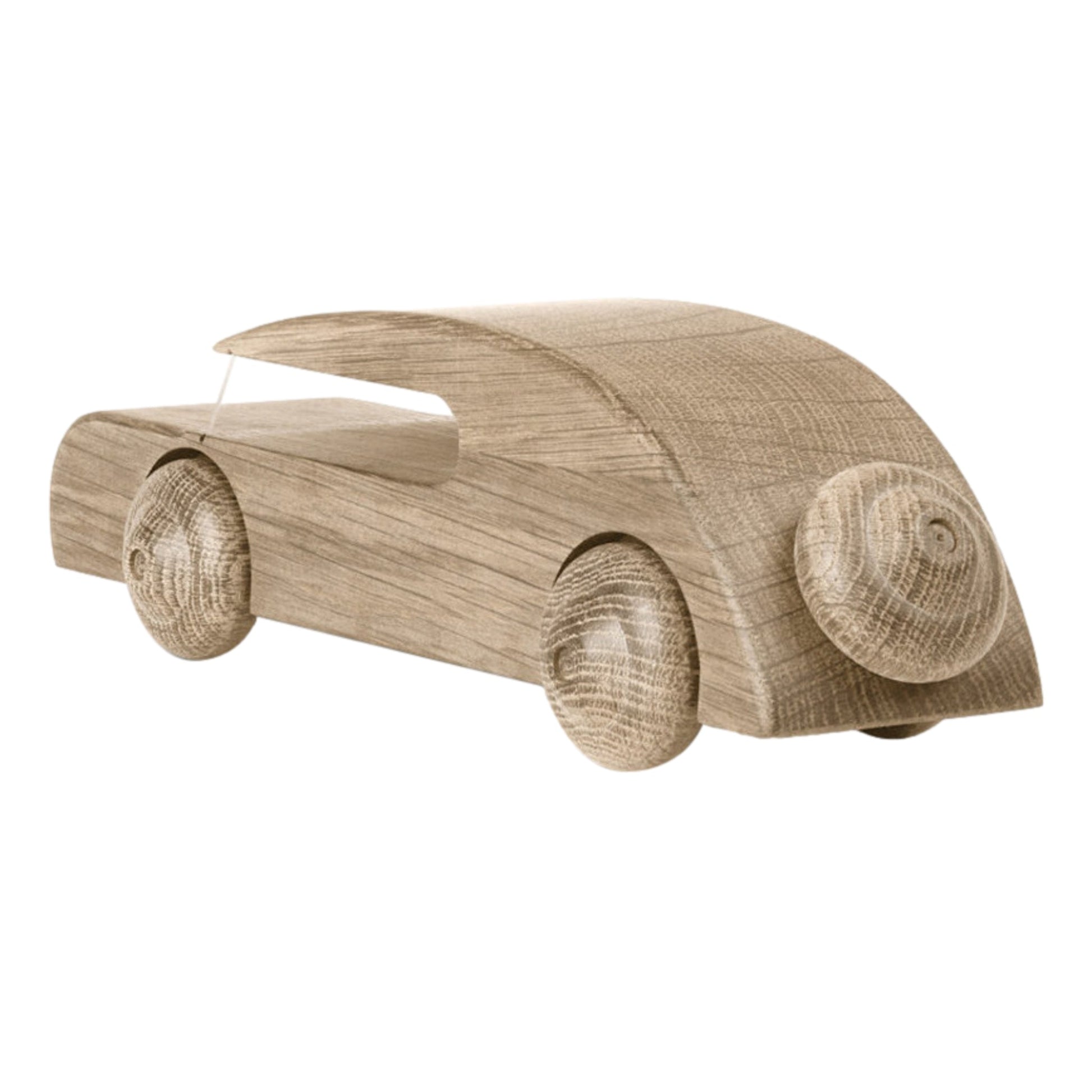 La berline originale était fabriquée en chêne massif non traité et a été créée par Kay Bojesen en 1937. Longue de 27 cm, elle conserve ses dimensions actuelles, avec des lignes aérodynamiques évoquant la voiture d'un véritable super-héros.