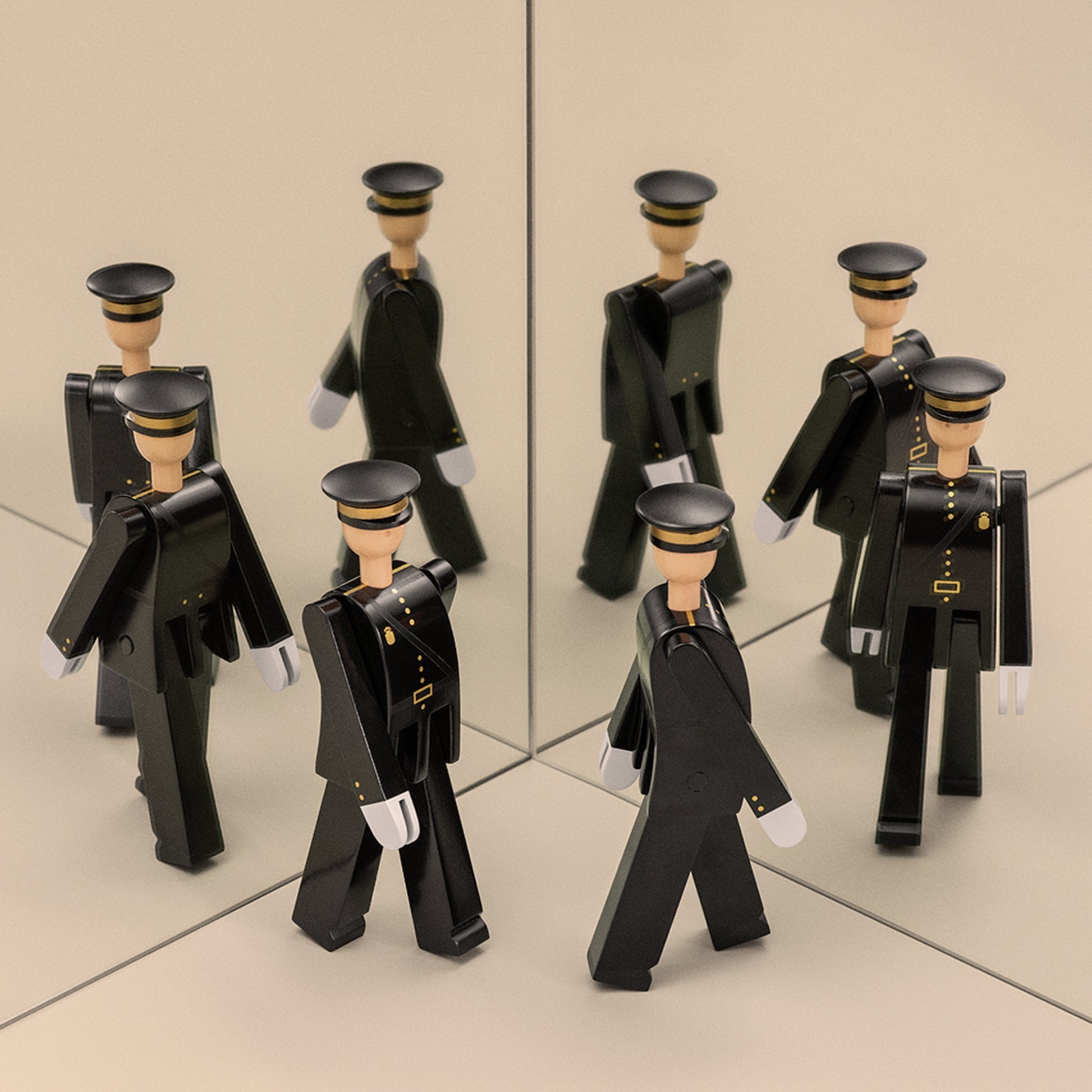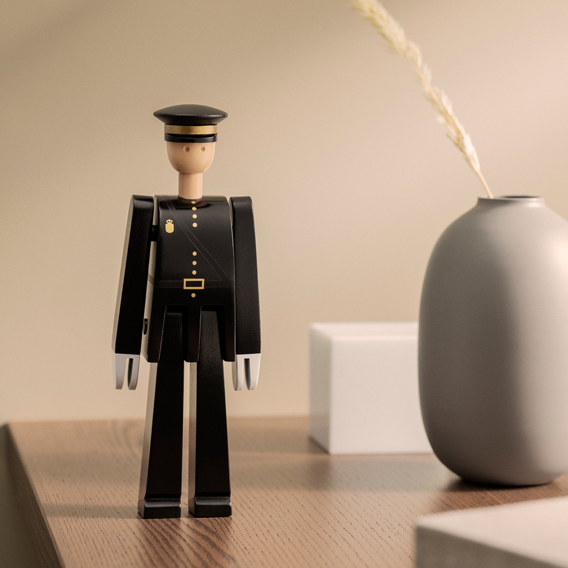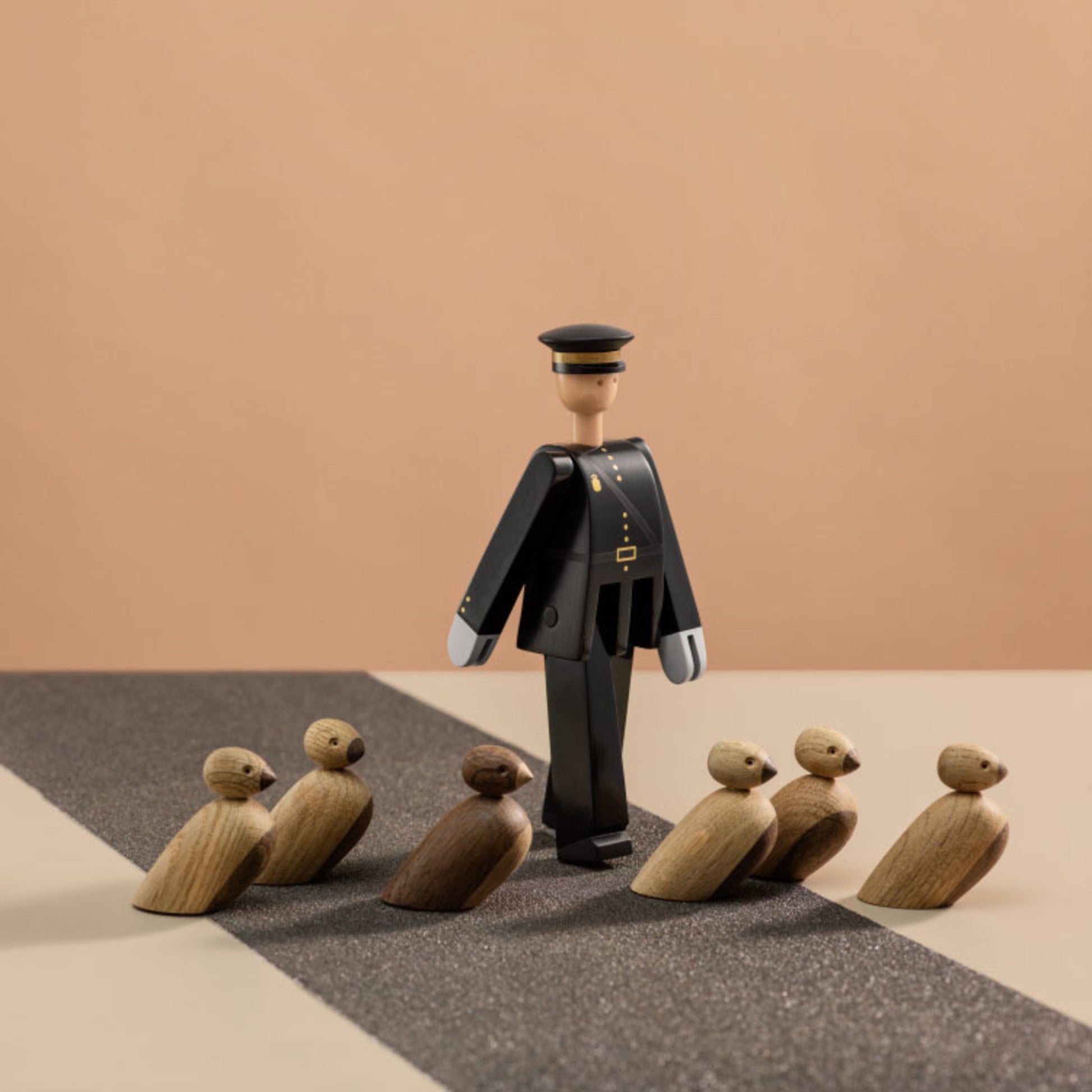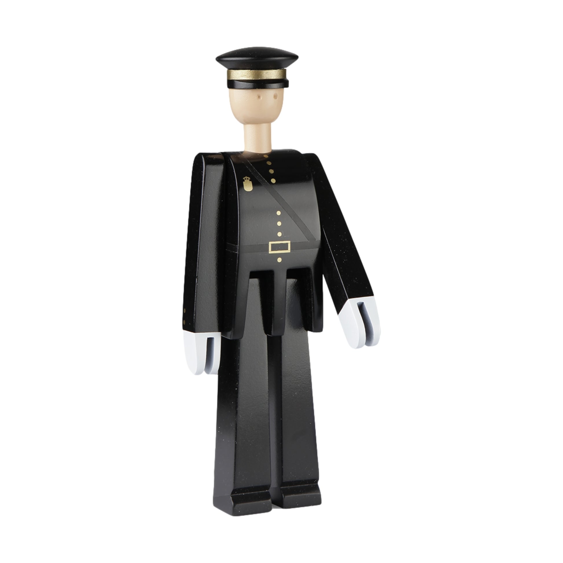 Le policier de Kay Bojesen s'inspire d'autres institutions en uniforme. Il appartient à la même collection que le garde, le marine et le facteur. Ces figurines en bois, représentant des policiers en uniforme, ont conquis le cœur du public et sont désormais des éléments incontournables de la plupart des foyers danois. Le policier, de couleur noire, est une décoration intérieure intemporelle. Il s'intègre particulièrement bien dans les intérieurs design modernes, mais peut tout aussi bien embellir une maison familiale.