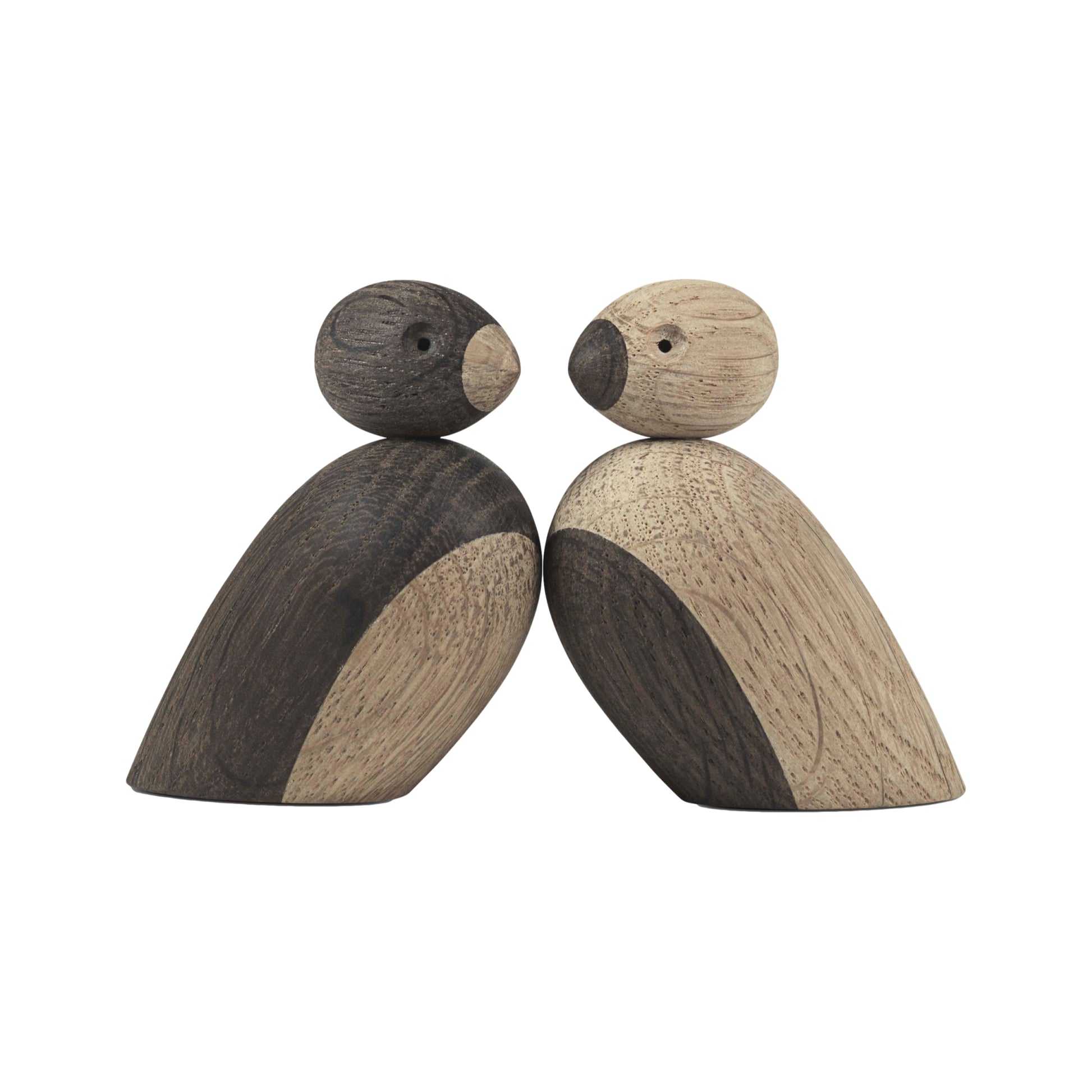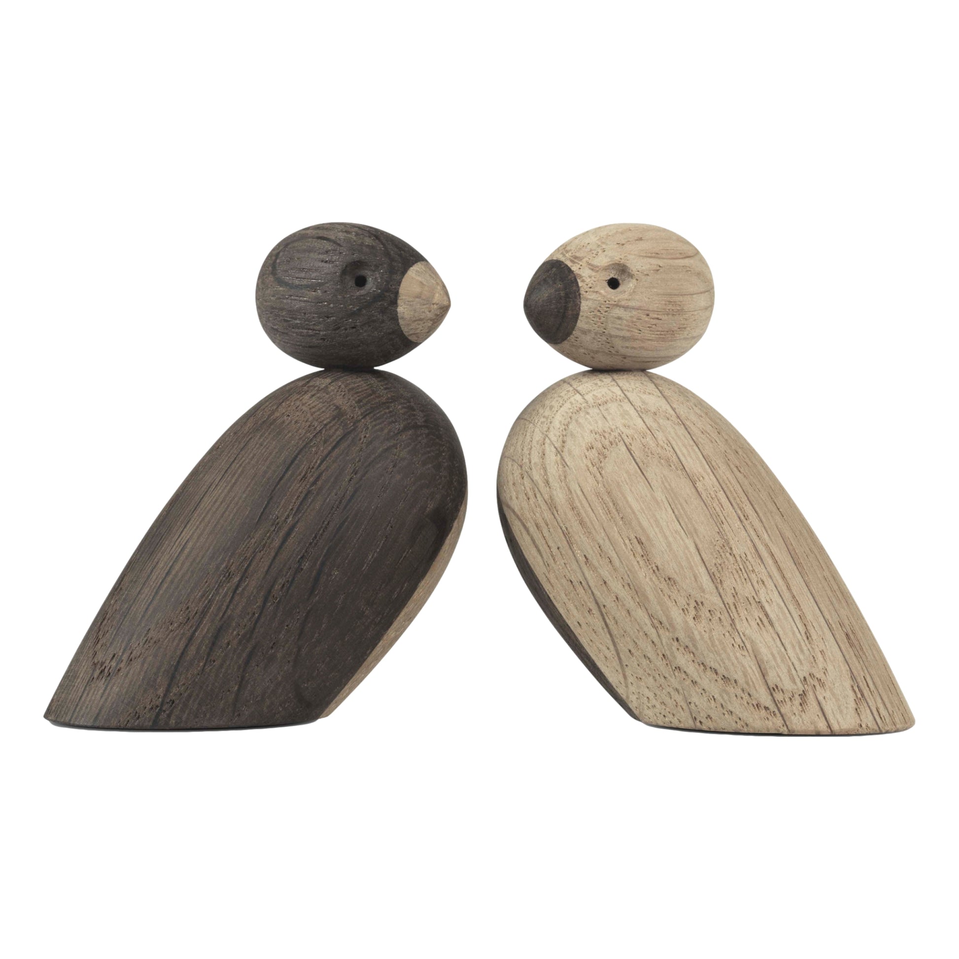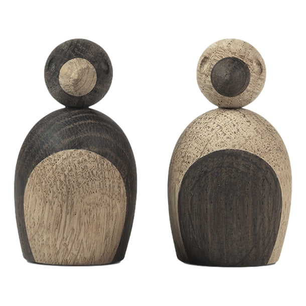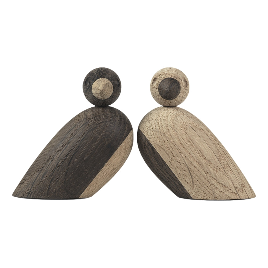 Ce joli couple de moineaux a été conçu par Kay Bojesen et est réalisé en chêne naturel et en chêne fumé. Chaque moineau est aimanté, ce qui permet de le fixer sur une planche avec d'autres moineaux.