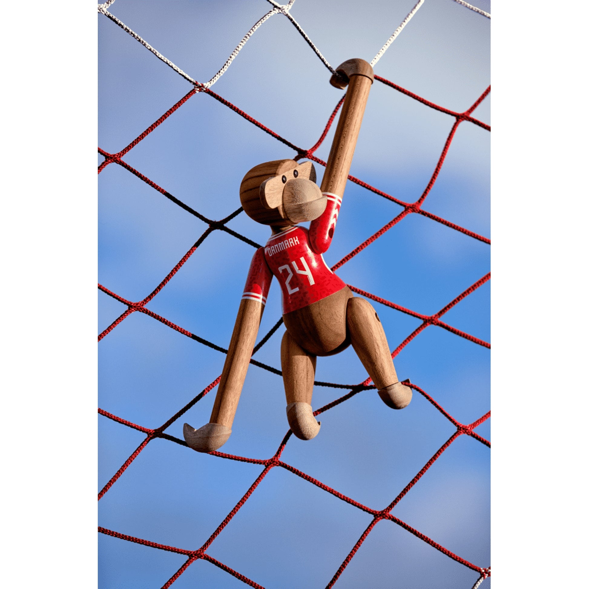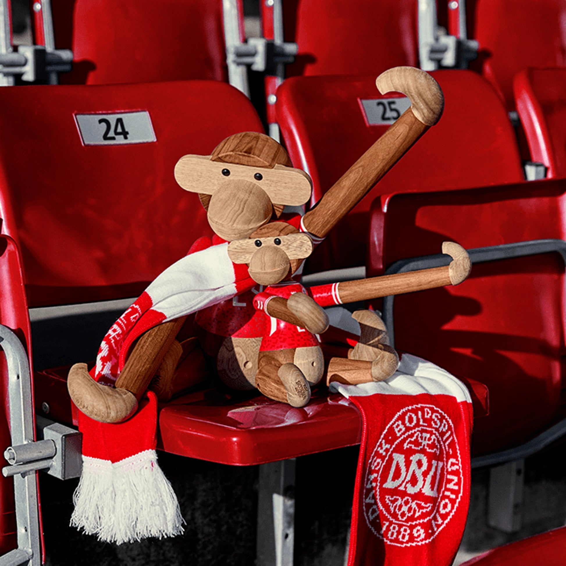 A new teammate for everyone in Red and White! With the Kay Bojesen Monkey x DBU (Danish Football Association), two of the greatest Danish national icons have joined forces. With humor, creativity, and impeccable craftsmanship, this collaboration celebrates unity, pride, and the joy of standing side by side.